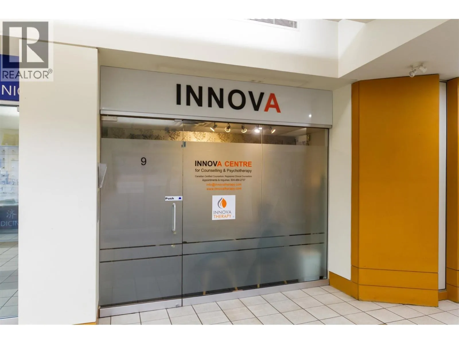 Create your own destiny in this 713 sq ft ground floor office/retail space at 1161 The High Street in Coquitlam’s vibrant City Centre. Located in well-established Kensington Plaza, this high-exposure unit is surrounded by successful businesses, restaurants, and high-density residential towers, generating steady foot traffic. The efficient layout suits professional office, medical, wellness, or boutique retail use, with large storefront
