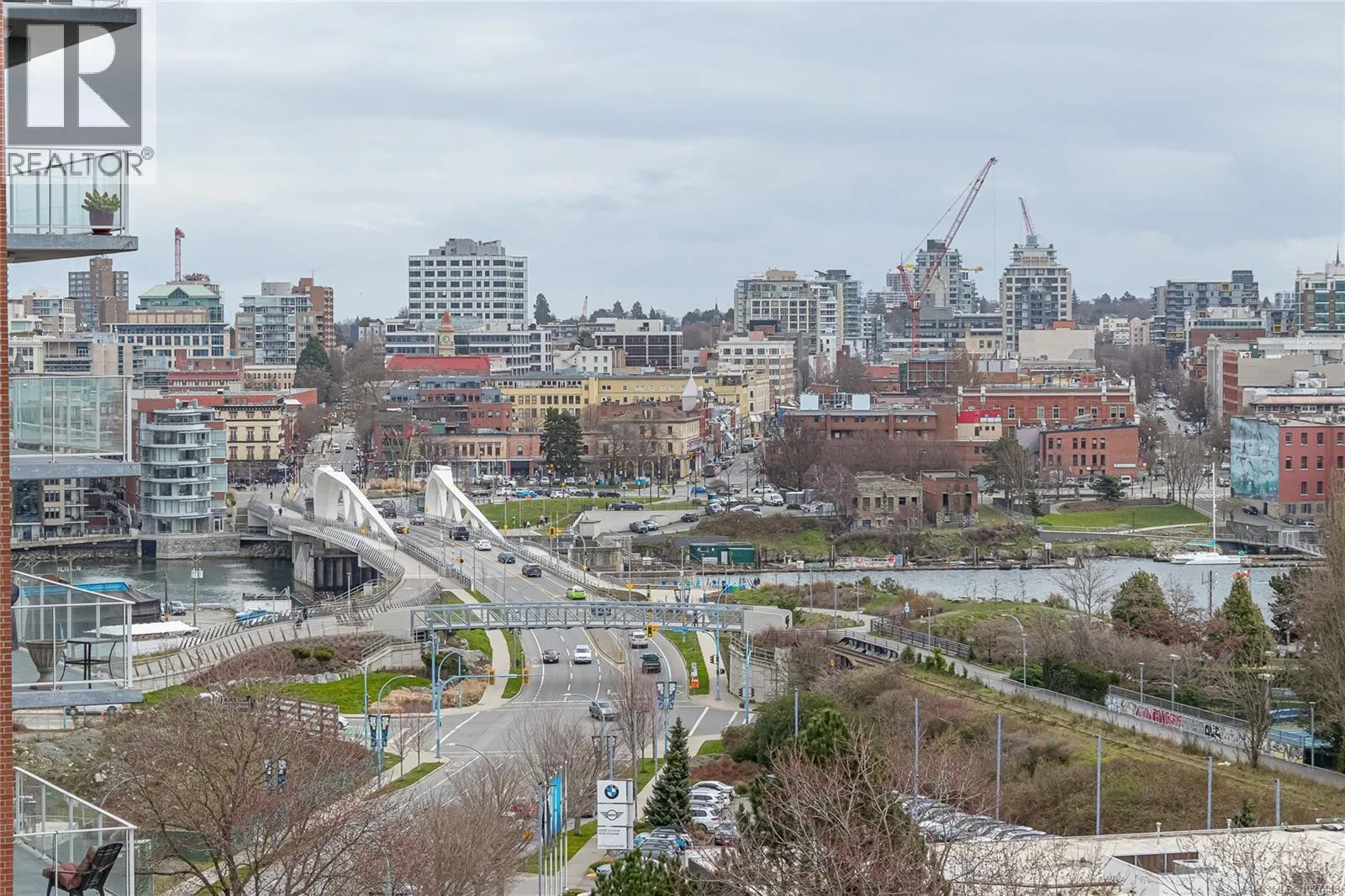 Outstanding views of the ocean, mountains towards the Olympics and Salish Sea, and the vibrant Inner Harbour can be viewed from all the large windows and huge deck. This updated 1328 sq ft two bed, two bath Condo is in the distinguished Bayview One. Waterfall marble countertops , Jenn Air stainless steel appliances, gas range, and plenty of cabinets