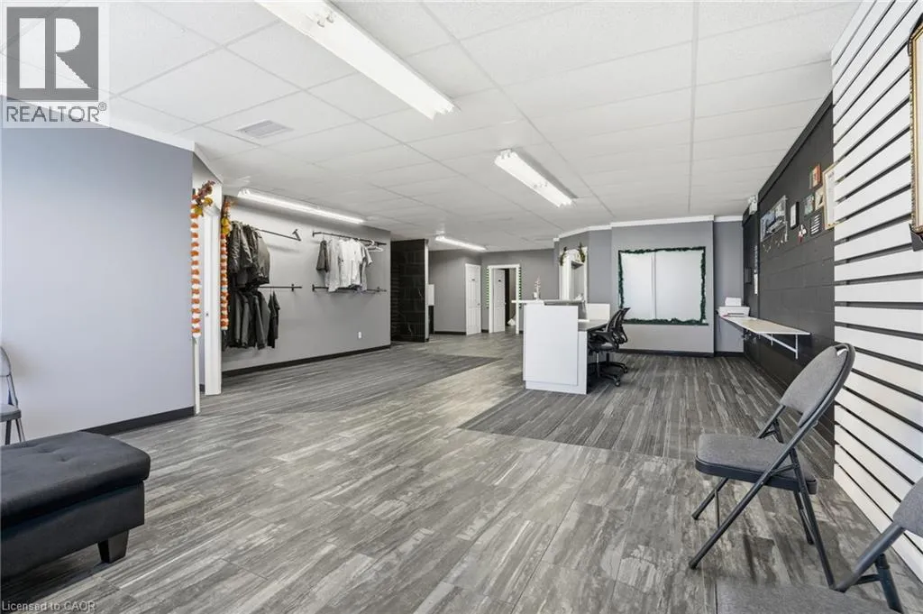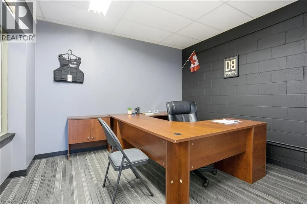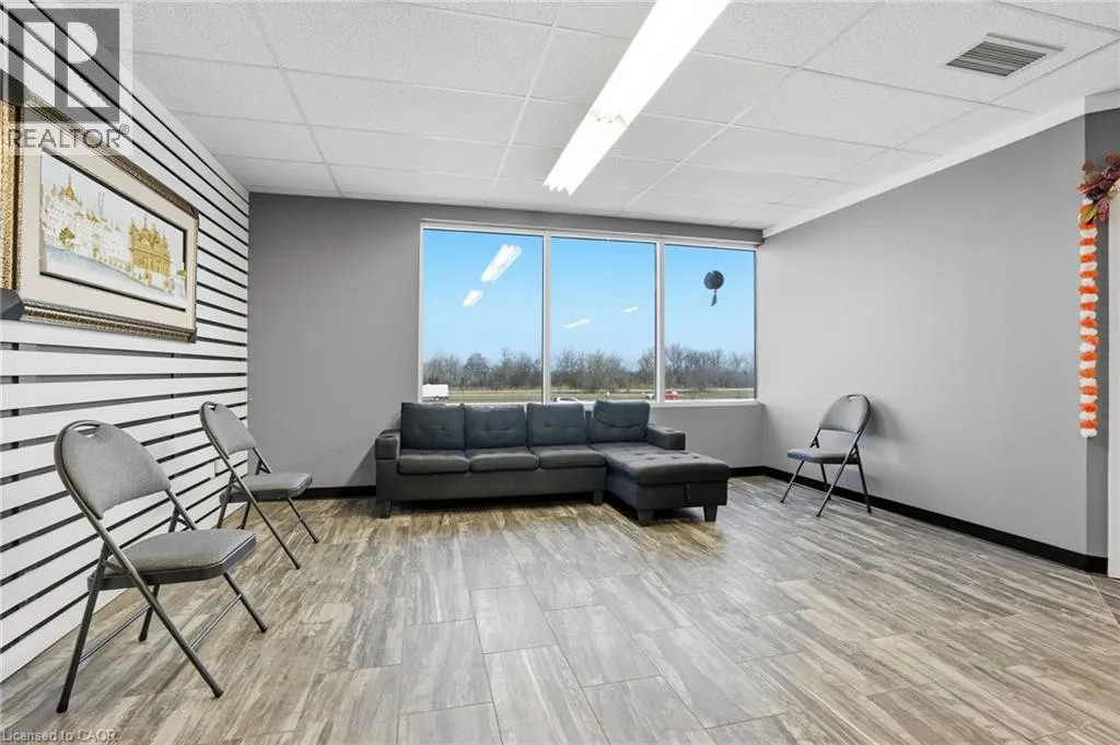Upper floor office and showroom space available for lease, offering an abundance of natural light throughout. Ideally positioned along the QEW, this location provides direct highway access and outstanding visibility, making it well suited for a variety of professional or showroom uses. The current layout features two private offices and a large finished open workspace or showroom area, creating a