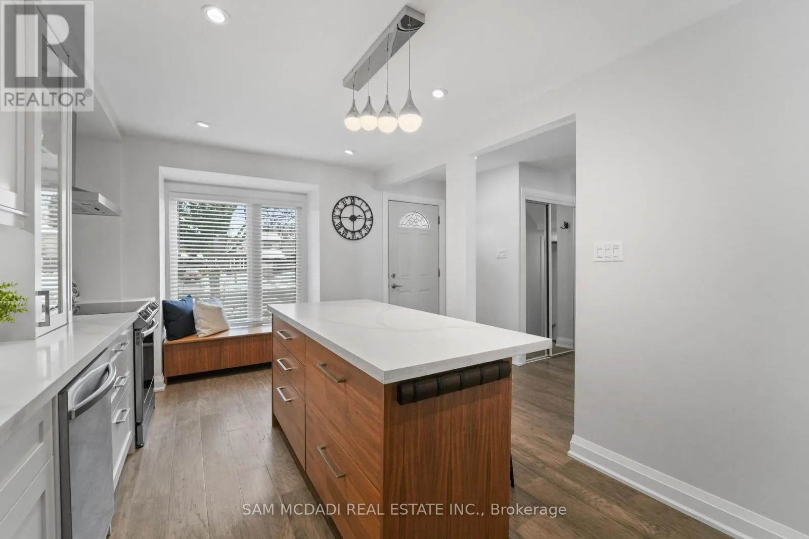 Welcome to 4235 Pheasant Run, a beautifully updated 3-bedroom family home in a quiet, established neighbourhood. Upon entry, the bright main level features wide-plank engineered hardwood, modern lighting, and an open-concept layout ideal for both daily living and entertaining. The chef-inspired kitchen showcases quartz countertops, a large island with seating, stainless steel appliances, and custom cabinetry with a stylish backsplash.