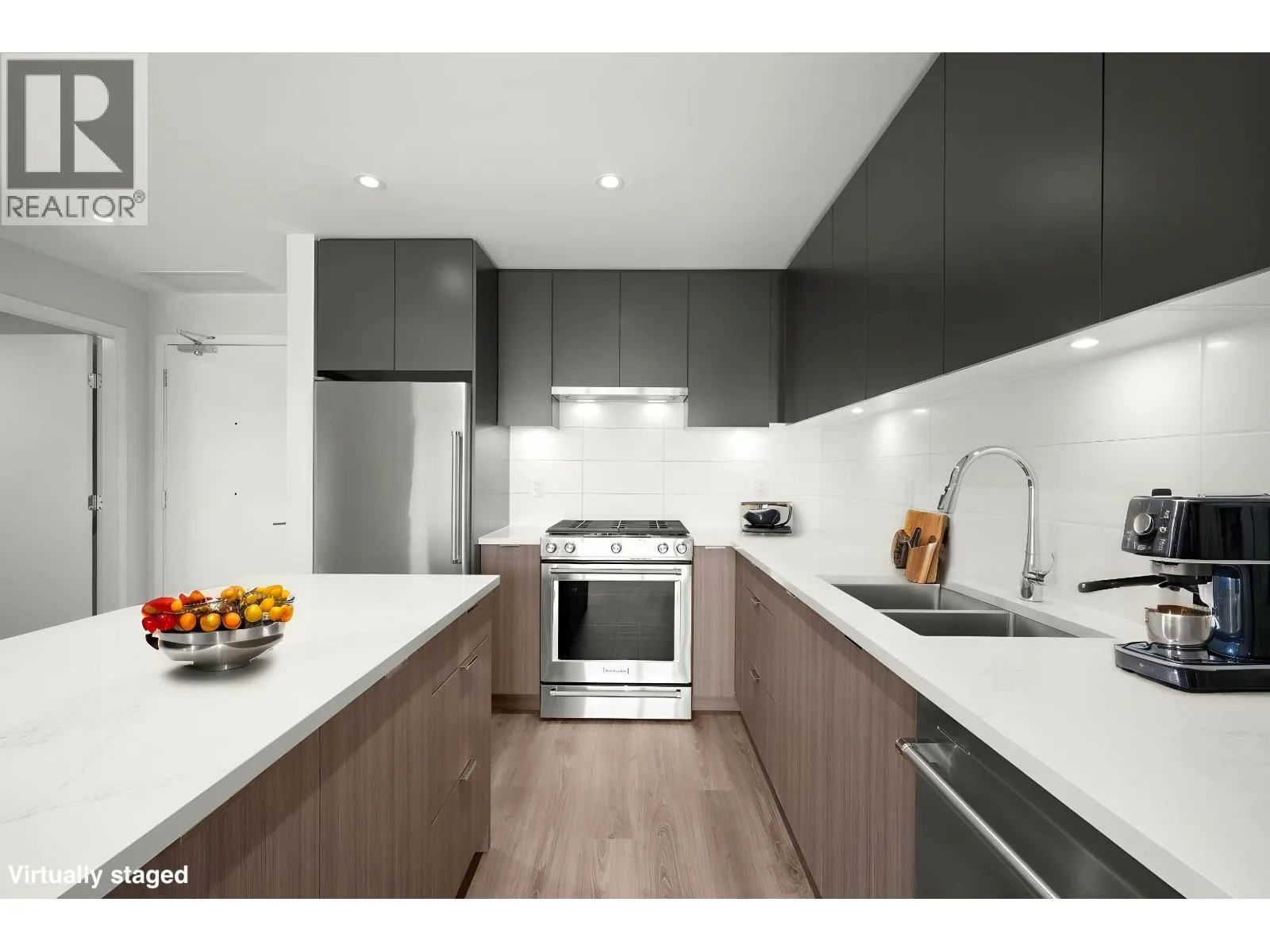 Welcome to Paradigm at River District! This west-facing 1 bed + den home offers a smart, open layout with a covered balcony for year-round enjoyment. The sleek kitchen features full-size stainless steel appliances, a gas cooktop and quartz countertops, plus full-size in-suite laundry and air conditioning for year-round comfort. Enjoy outstanding building amenities including a fully equipped fitness centre, yoga/TRX/boxing