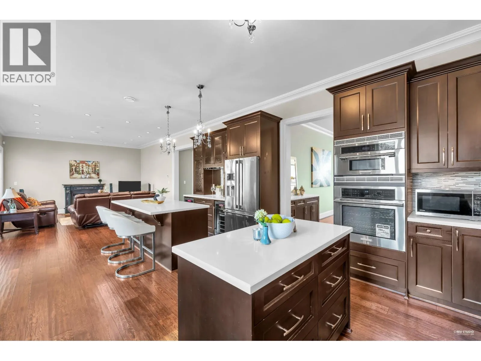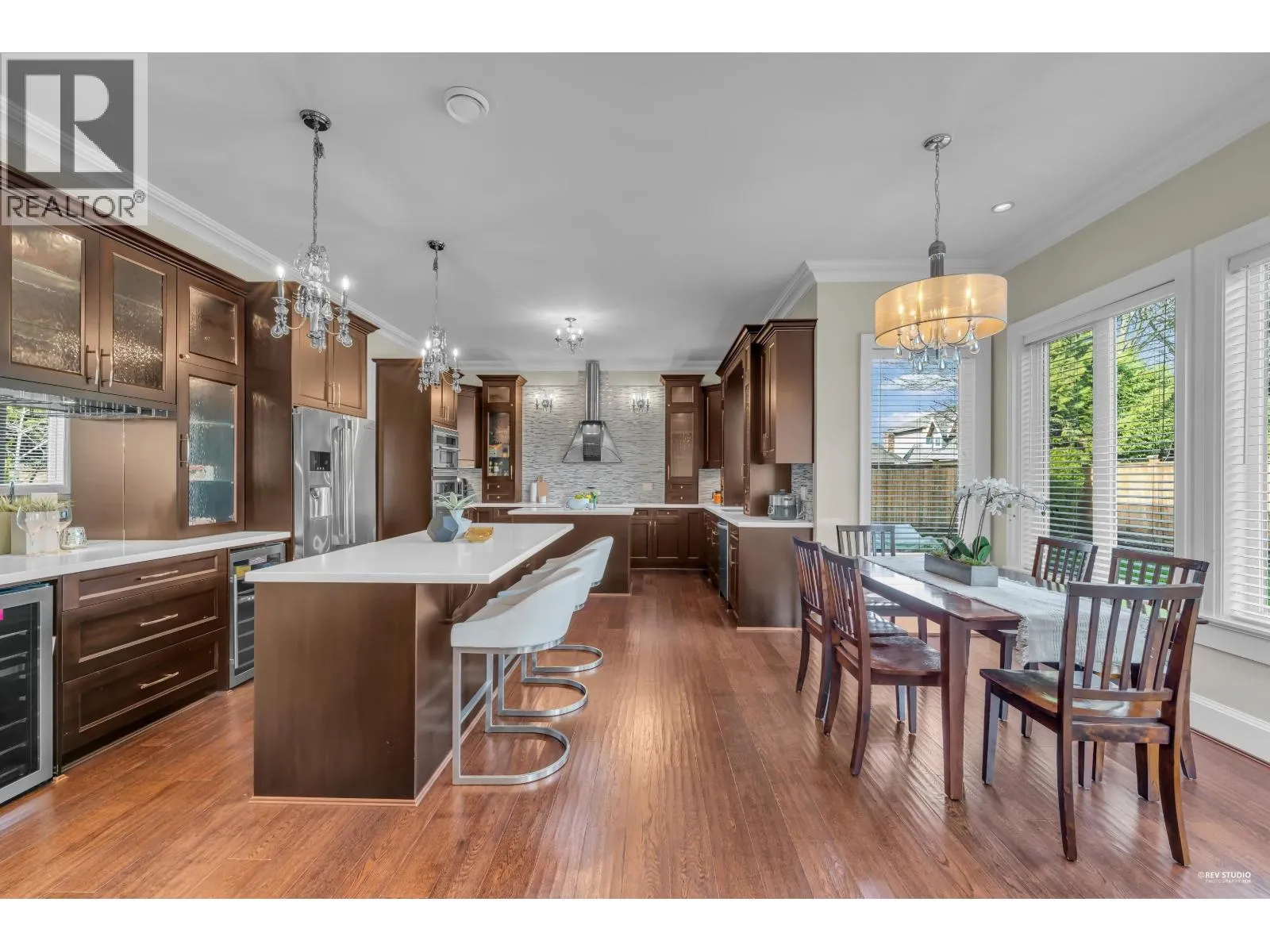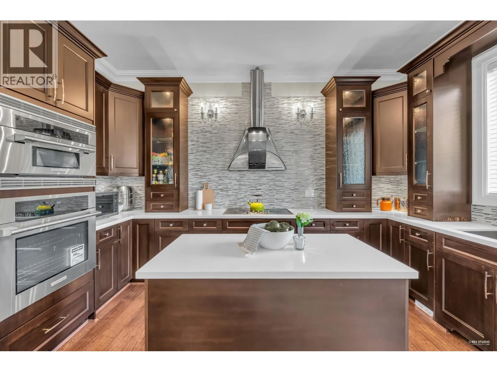 Magnificent South facing custom-designed home built by a European builder with exceptional quality and craftsmanship. Featuring supreme finishing and thoughtful interior design, this residence offers a warm yet luxurious atmosphere. Gourmet kitchen with premium appliances and soft-close cabinetry plus separate wok kitchen. Real oak hardwood floors, and Swarovski crystal chandelier. 4 spacious upstairs bedrooms, all with own bathrooms. Wet bar,