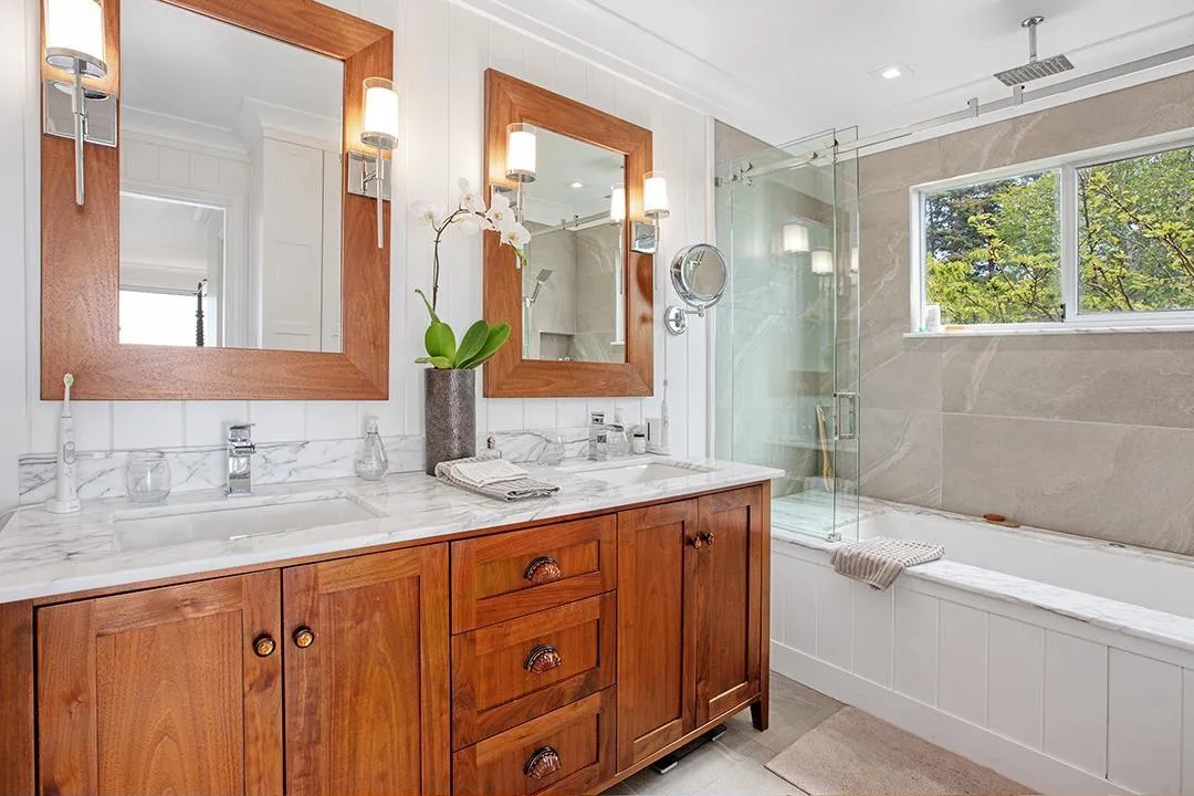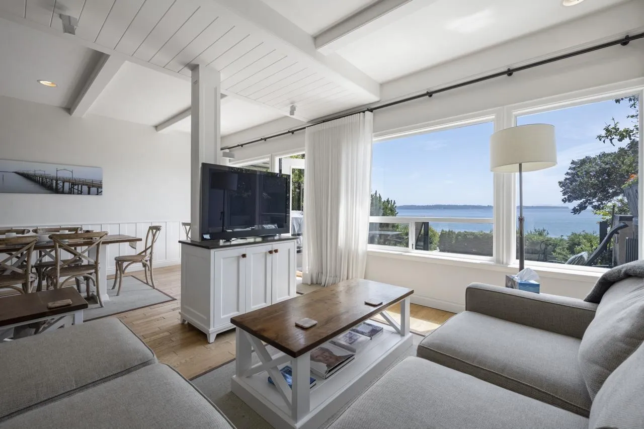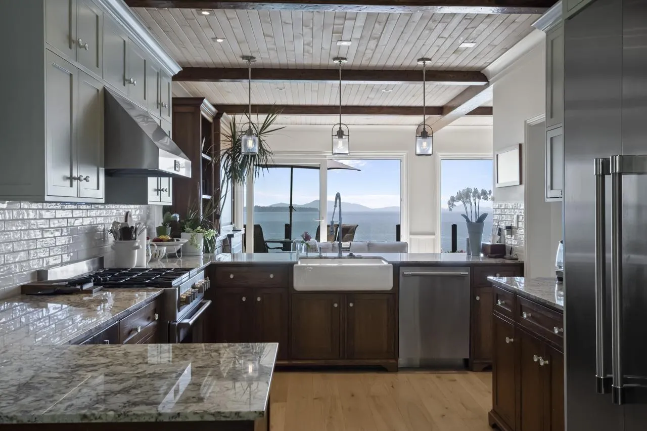 Panoramic ocean views spanning 180 degrees, no wires & majestic Mount Baker views East. An exceptional quality renovation in 2022 + new roof & interior designer used. Precision craftsmanship from a renowned cabinet maker. Custom cabinets, superior workmanship evident in bathrooms, kitchen, living room built-ins, millwork and family room. Quality lighting fixtures & forged steel hardware. Beautiful German white oak