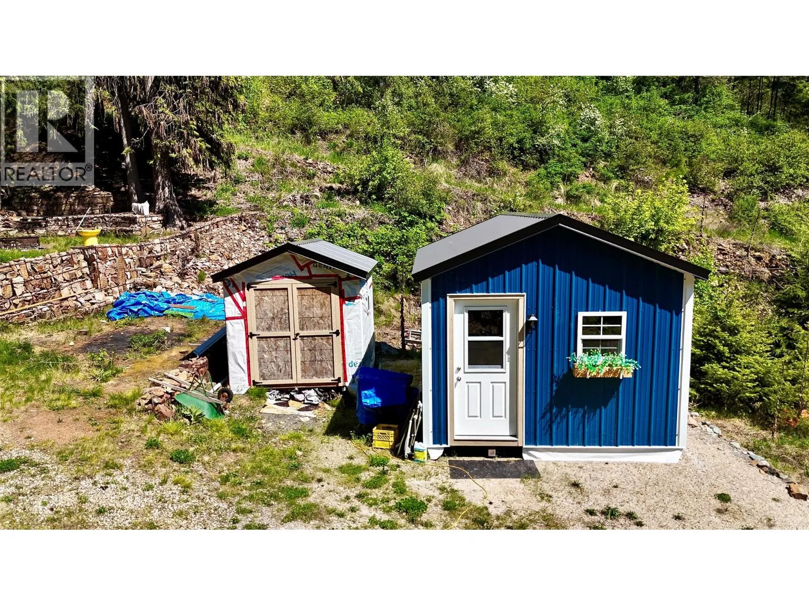 This charming property in Woodbury Village, Ainsworth Hot Springs, BC, is set up for seasonal use or year-round living. Located just 10 minutes south of Kaslo and 45 minutes north of Nelson, it features a beautifully upgraded setup. The newly constructed bunkie cabin creates an additional living space for guests or extra storage. The property also features a new shed
