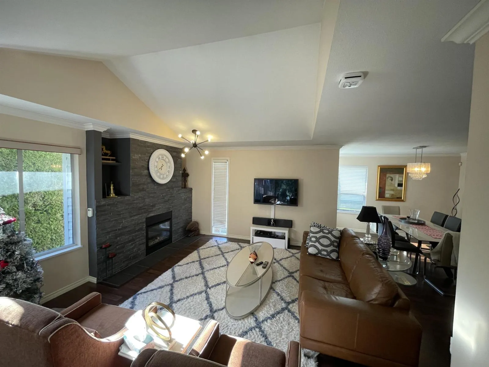 Picture yourself in this fabulous ground level detached rancher style townhome in Camberley Green, a gated 55+ complex boasting 2 bedrooms, 2 bathrooms, laminate and tile flooring, vaulted ceilings, crown molding, 2019 hot water tank, cozy gas fireplace with floor to ceiling stone. White modern kitchen cabinets with soft close hardware, under-mount sink, quartz countertops & stainless appliances includes a
