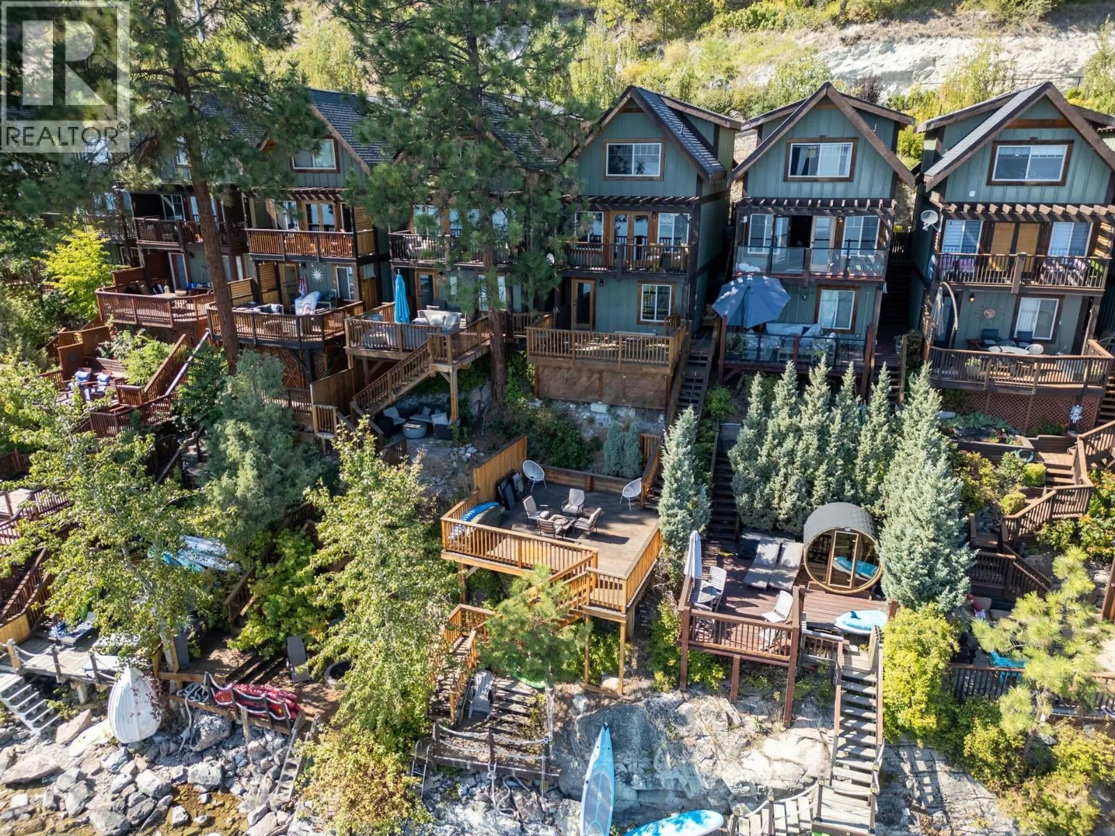STUNNING waterfront property on the beautiful Okanagan Lake. The Cottages at Secret Point is a sought after detached townhouse development that offers secluded lake front living while only 20 minutes from West Kelowna. This fully furnished, cozy cabin right on Okanagan Lake boasts two large decks with breathtaking views. Enjoy the brand-new dock, installed last year, with space for your