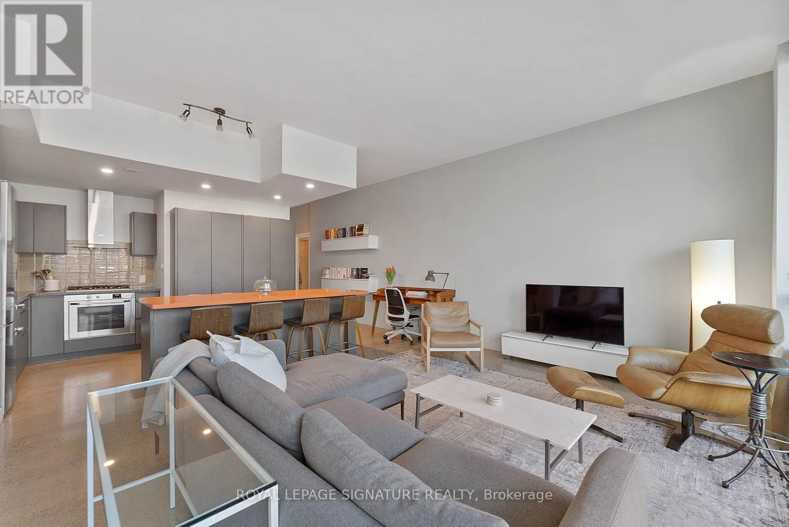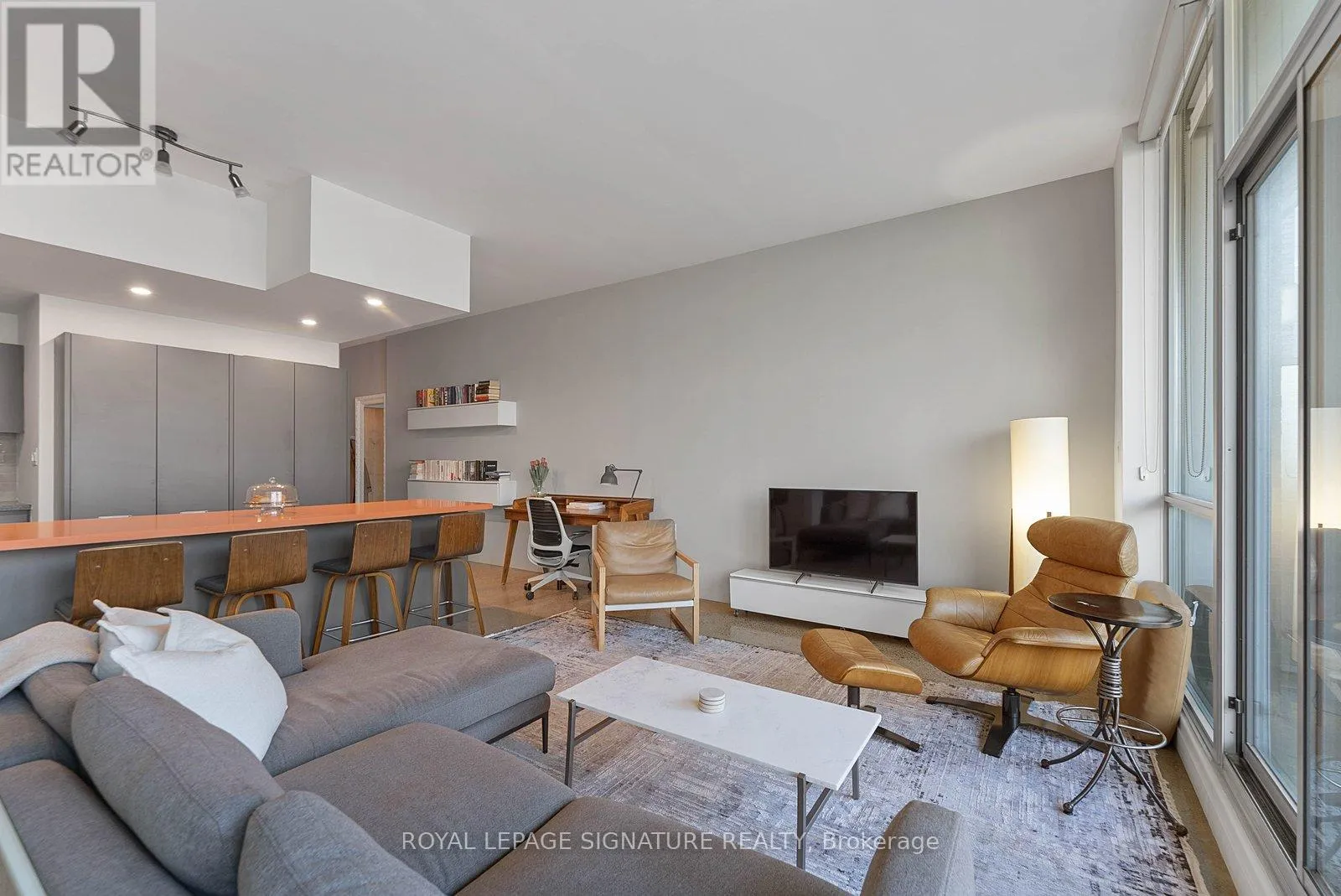 Set in historic Corktown, this modern 1-bedroom loft features 10-ft ceilings and a bright, open layout. The kitchen is finished with custom cabinetry, Miele stainless steel appliances, a backsplash, and a Ceasarstone centre island with seating and pot lights overhead. The spacious bedroom includes built-in closet organizers, while the upgraded corner unit offers a large private balcony. Steps to the