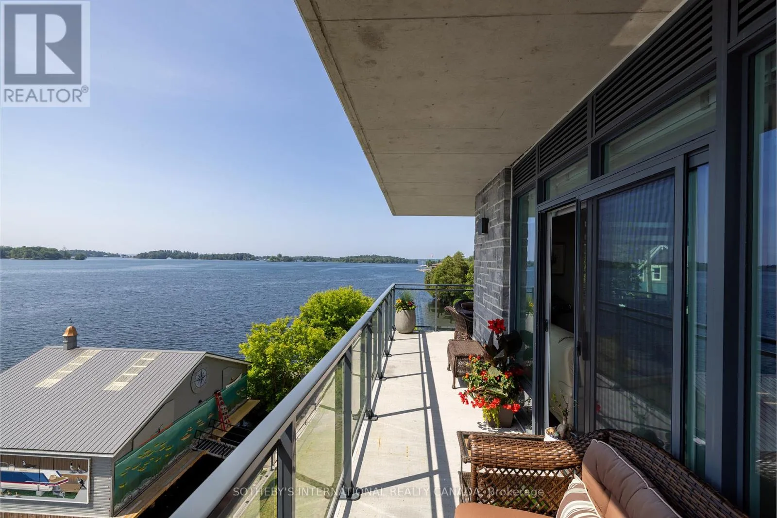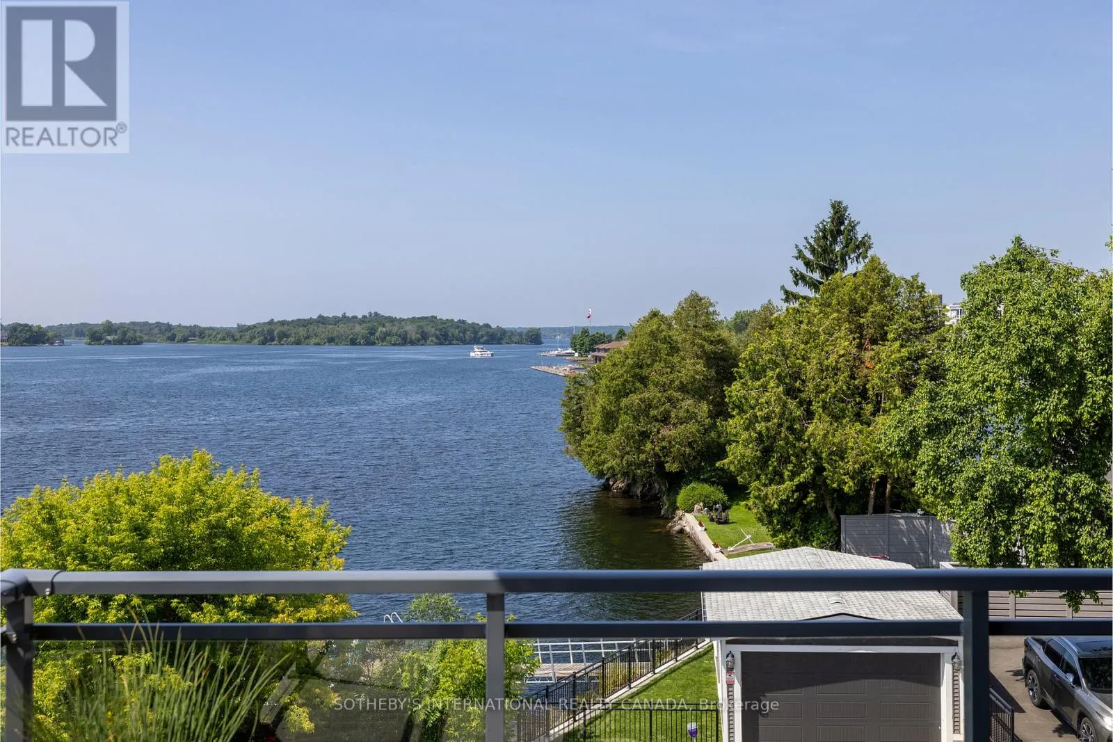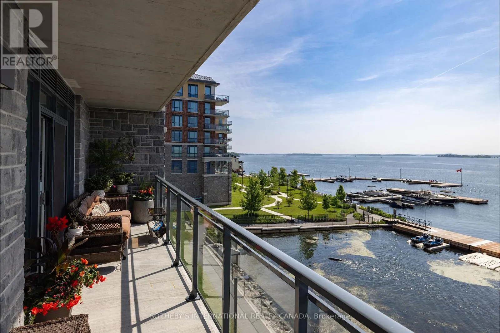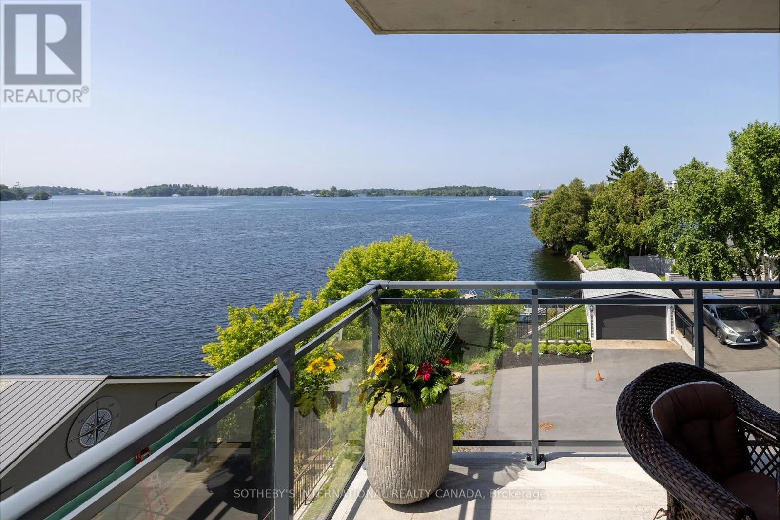Experience refined waterfront living along the iconic St. Lawrence River in this exceptional 2-bedroom, 2-bathroom corner residence. Showcasing sweeping 270-degree panoramic views to the south, west, and north, this home captures ever-changing skies, sparkling water, and unforgettable sunsets from nearly every vantage point. Designed for those who appreciate both luxury and lifestyle, this residence offers a rare and coveted 44-foot