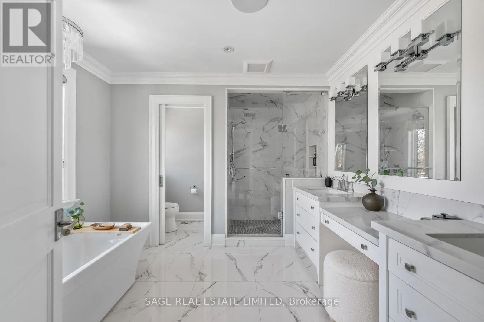 Royal York Reserve. Positioned in highly sought-after Sunnylea, this custom-built 4+1 bedroom, 5-bathroom home designed by architect David Small, seamlessly blends traditional charm with modern sophistication. The main floor features a private office, formal dining room, and a mudroom with a convenient wash station. The open-concept chef’s kitchen is outfitted with Wolf and Sub-Zero appliances, a large cast-iron sink, centre