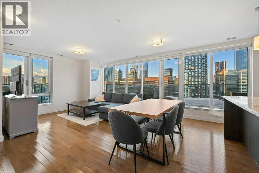 Your front-row seats to the Calgary skyline. A Penthouse feel – without the Penthouse price. Enjoy 2 bedrooms + 2 bathrooms + 2 terraces while overlooking 1 incredible view. From the moment you walk in, the energy is undeniable. Expansive windows flood the open-concept space with natural light while the city becomes your everyday backdrop. The kitchen delivers both style