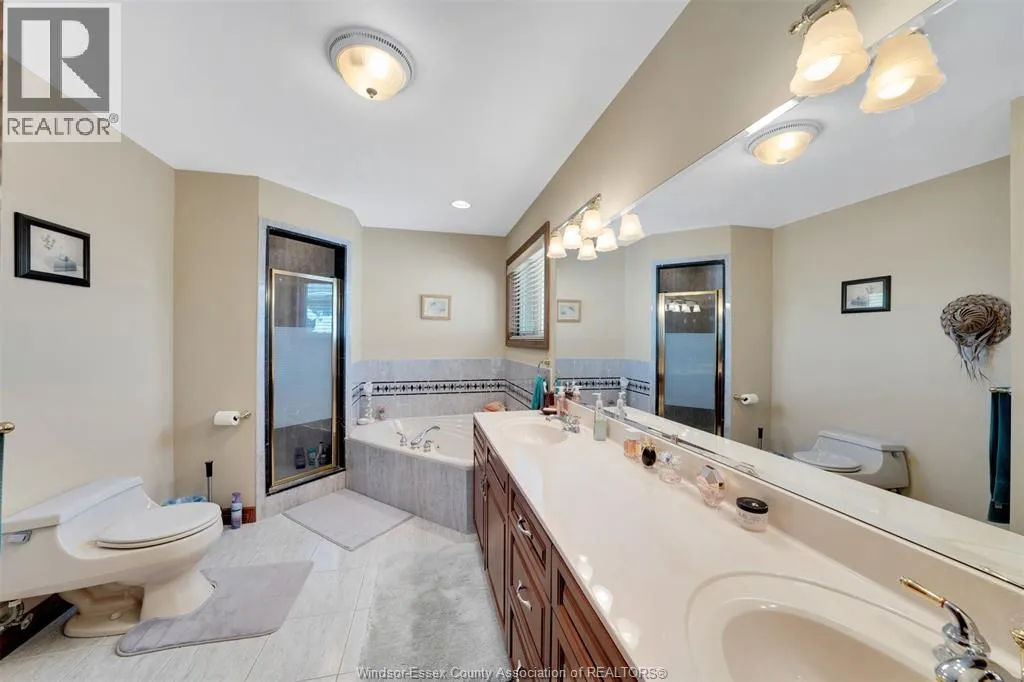 Custom built home located on a quiet cul-de-sac in a sought after neighbourhood in Tecumseh. Features 3 Bedrooms & 3 Baths, spacious foyer, lrg eat-in ktchn w/custom cherry wood cabinets, liv rm & dining rm w/ 11 ft ceilings & main flr laundry. Primary bdrm is complete w/ ensuite & jacuzzi tub as well as his & her walk-in closets.