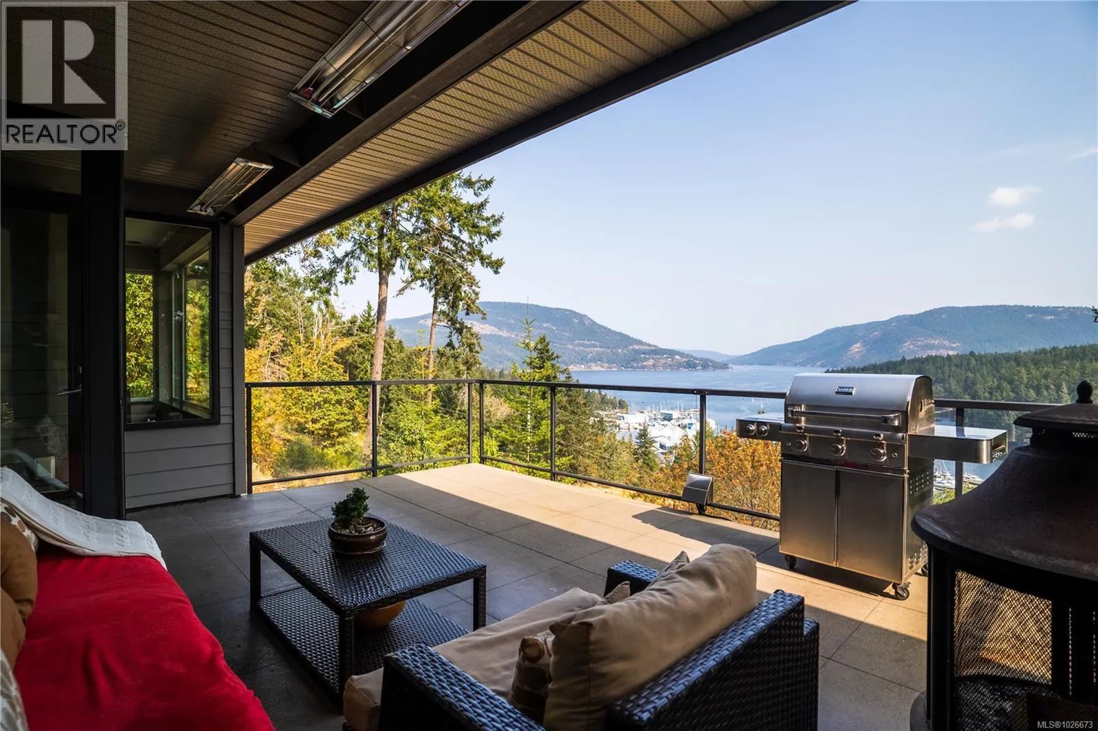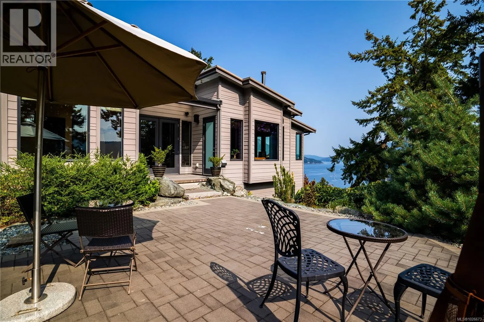 Experience elegance in this stunning Maple Bay home set on 2 private acres with spectacular views to Vancouver. Just minutes from a marina with float plane service, it offers unmatched convenience and tranquility. This 5,000 sq/ft residence, crafted using the golden ratio and artistically finished, features 5 bedrooms and 5 bathrooms. The vaulted living space welcomes you with a fountain-adorned
