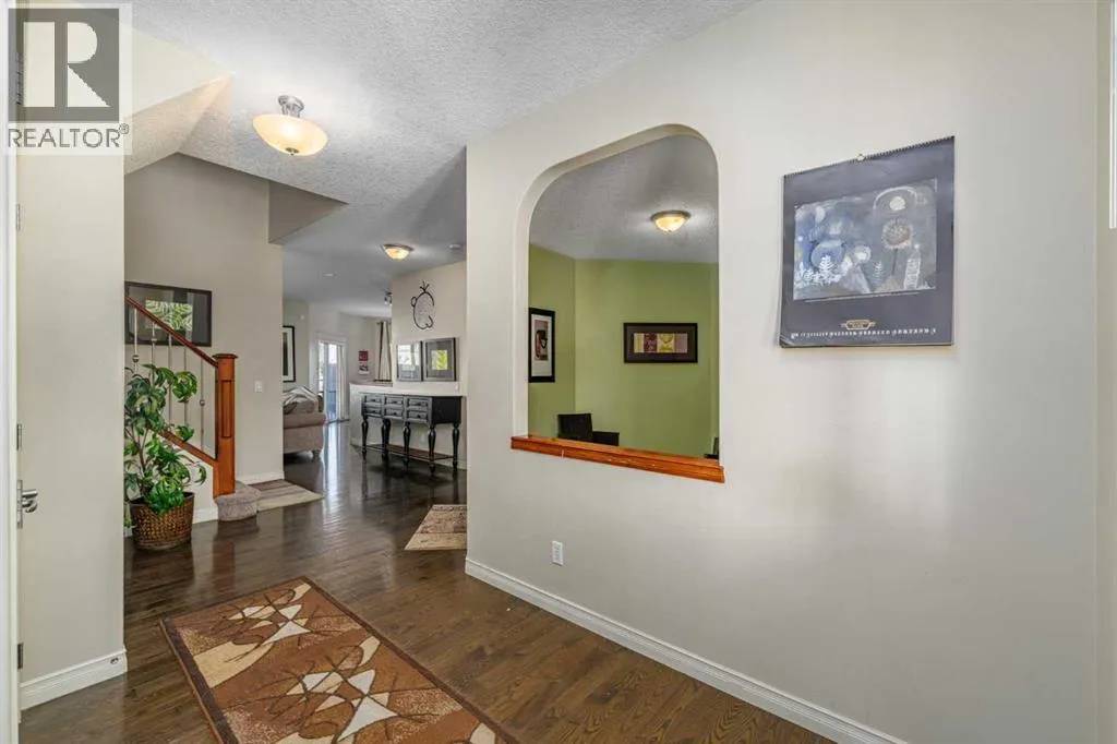3,394 sq.ft. of beautifully developed living space, designed to impress at every turn. As you step inside, the rich hardwood flooring, soaring ceilings, and abundance of natural light immediately set the tone. The front sitting room greets you first, a versatile space that can easily function as a home office, playroom, or quiet reading retreat. Moving further in, the home opens into a bright and inviting main living area designed for both everyday comfort and entertaining. The spacious kitchen features stainless steel appliances, a pantry, and generous counter space, seamlessly connecting to the dining area surrounded by windows that flood the space with sunlight. The living room is anchored by a cozy gas fireplace, creating a warm focal point for gatherings. A convenient half bath, along with a combined laundry and mudroom leading to the double attached garage, completes the main level with practicality in mind. Upstairs, you’ll find a thoughtfully designed layout that balances space and privacy. The large south-facing bonus room with vaulted ceilings is filled with natural light and offers the perfect setting for movie nights or relaxing with family. Two generously sized bedrooms and a full bathroom provide comfortable accommodations, while the primary retreat is a true standout. Vaulted ceilings enhance the sense of space, complemented by a walk-in closet and a well-appointed ensuite featuring dual sinks, a large soaking tub, and a stand-up shower with a corner bench. The fully developed and permitted basement, completed in 2022, expands your living options ev en further. Here you’ll find a spacious family room, a convenient kitchenette with wet bar and room for small appliances, two additional bedrooms, a full bathroom, and ample storage throughout. Whether for extended family, guests, or flexible living arrangements, this level adds tremendous value. Additional upgrades include a new furnace installed in 2021, central air conditioning, and a brand new roof with all new siding scheduled to begin this week, giving the exterior a fresh, modern finish. Built-in entertainment speakers throughout the main and upper levels enhance the home’s entertainment appeal. Step outside and enjoy your private backyard oasis backing directly onto green space, an ideal setting for relaxing evenings, summer barbecues, or watching the kids play just beyond your fence. With parks, schools, transit, and shopping all within walking distance and quick access to Stoney Trail, this home delivers the perfect combination of comfort, convenience, and long-term value. (id:64429)