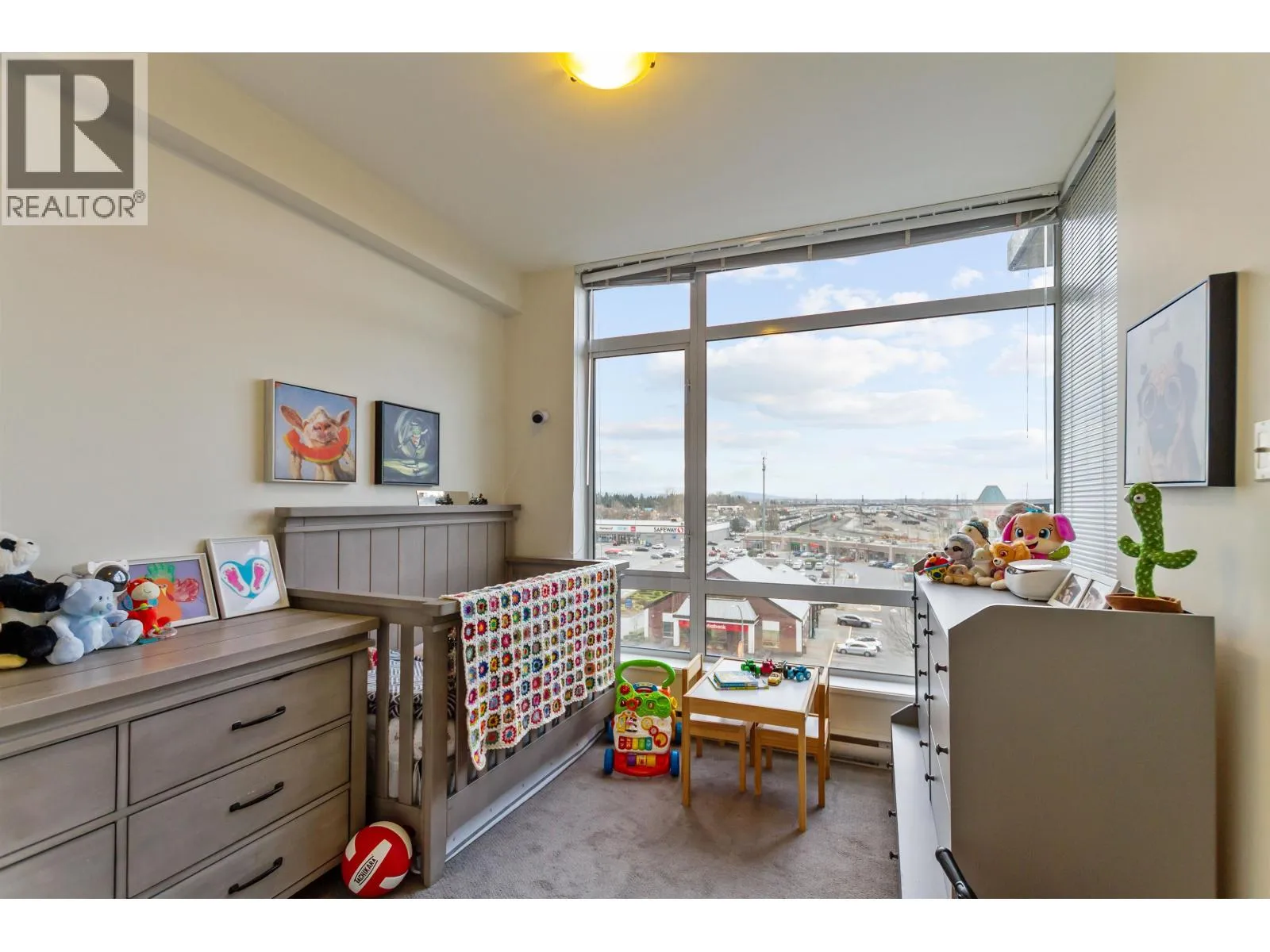 One and only high rise concrete building in Port Coquitlam by Shaughnessy Station Plaza and Lions Park! 180 degree view of the city & mountain from a corner unit featuring floor-to-ceiling windows, modern kitchen with as range, s/s appliances & spacious countertop. Upgrades: floor tiles, dishwasher, laundry and kitchen counter lights. The building offers fully equipped gym, yoga studio, games