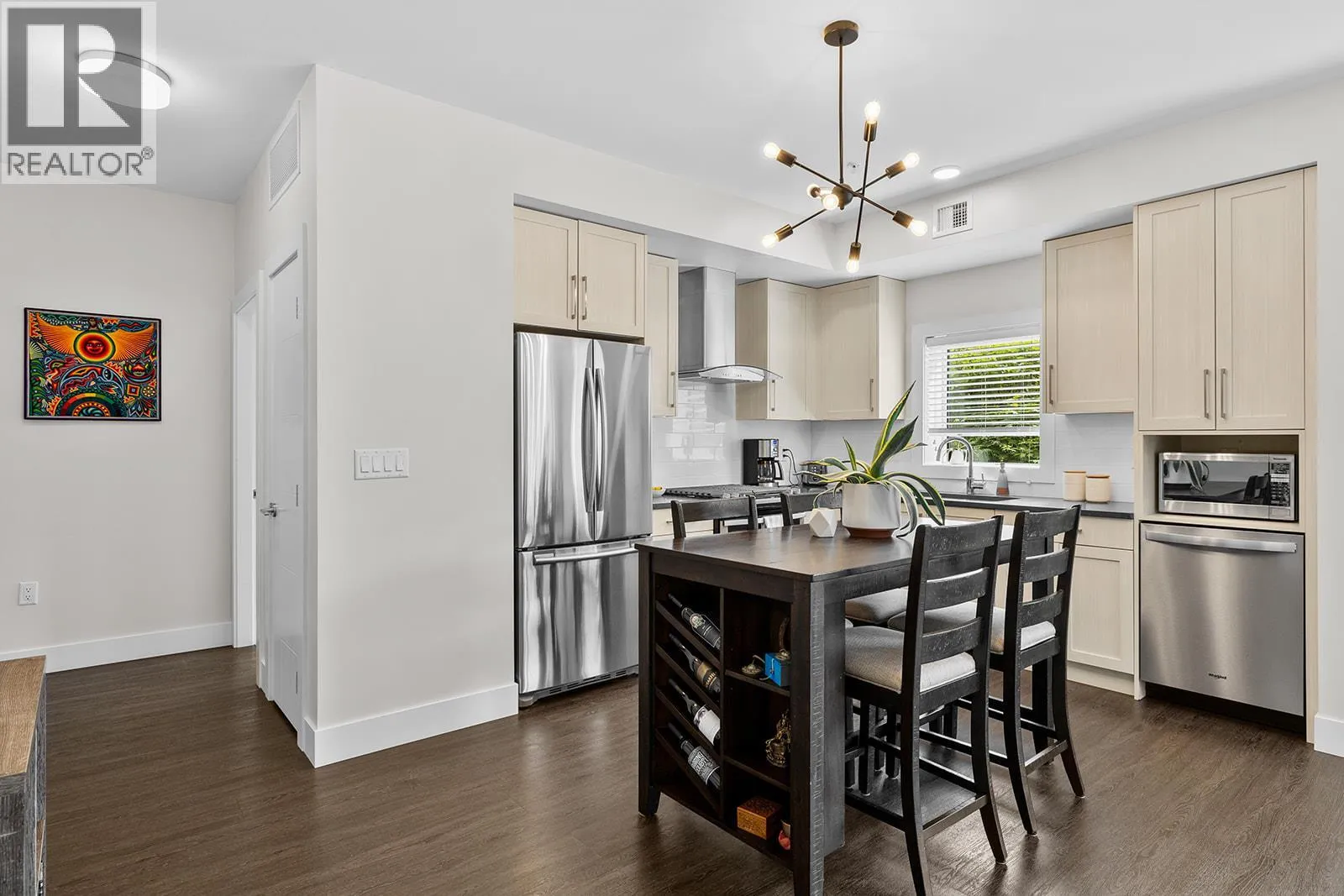 Private ground floor corner condo in the heart of one of Kelowna’s most coveted neighbourhoods. Approx. 863 sq ft with a smart split bedroom layout, this 2 bed, 2 bath home blends open concept comfort with everyday functionality. The kitchen features a stainless steel Whirlpool gas stove, Samsung fridge, generous cabinetry and flows seamlessly into the living area with over