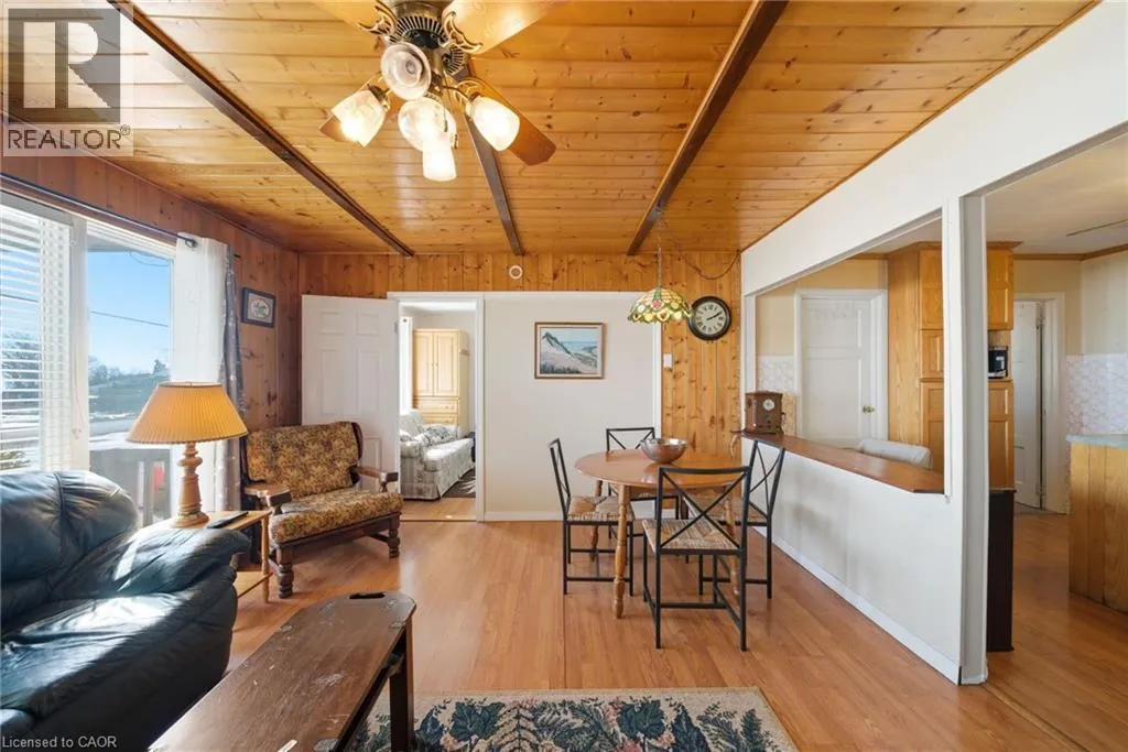 Year-round lakeside living with picturesque views of Lake Erie. This charming home offers a spacious family room featuring pine walls and ceiling, creating a warm and inviting atmosphere while enjoying lake views. Bright kitchen with breakfast nook and separate dining room provides functional living space for everyday use and entertaining. The home includes 2 bathrooms, one featuring a classic Jacuzzi