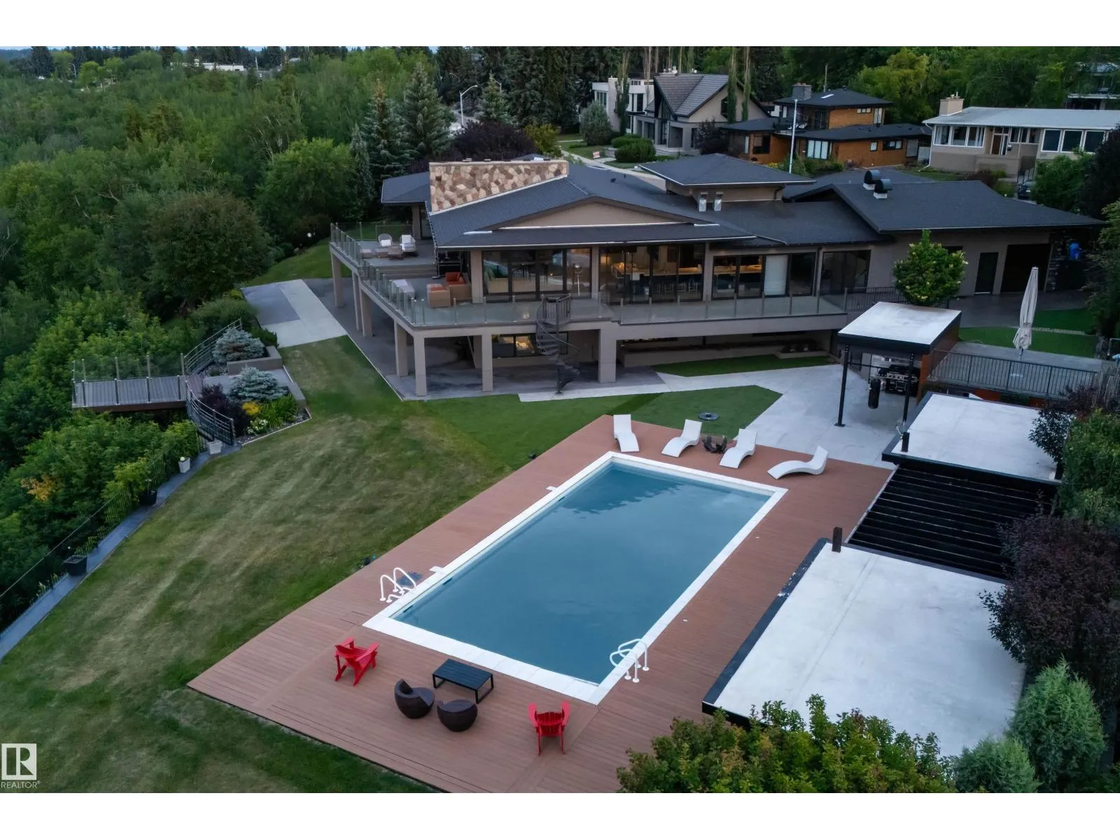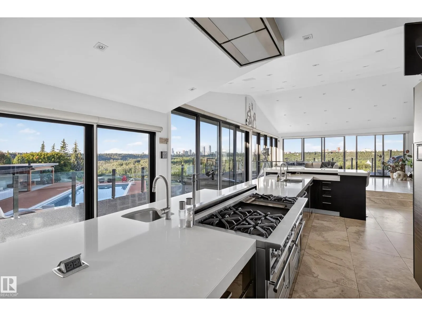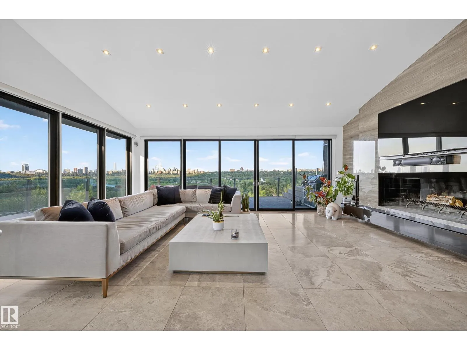 An iconic address with world-class views. Welcome to 13758 Valleyview Drive. Set on an extraordinary 49,000+ sq ft lot with unobstructed panoramic views of downtown Edmonton and the river valley, this custom-built estate offers over 6,500 sq ft of elevated living. Every detail has been crafted for luxury, from the grand chef’s kitchen and open-concept living spaces to the expansive