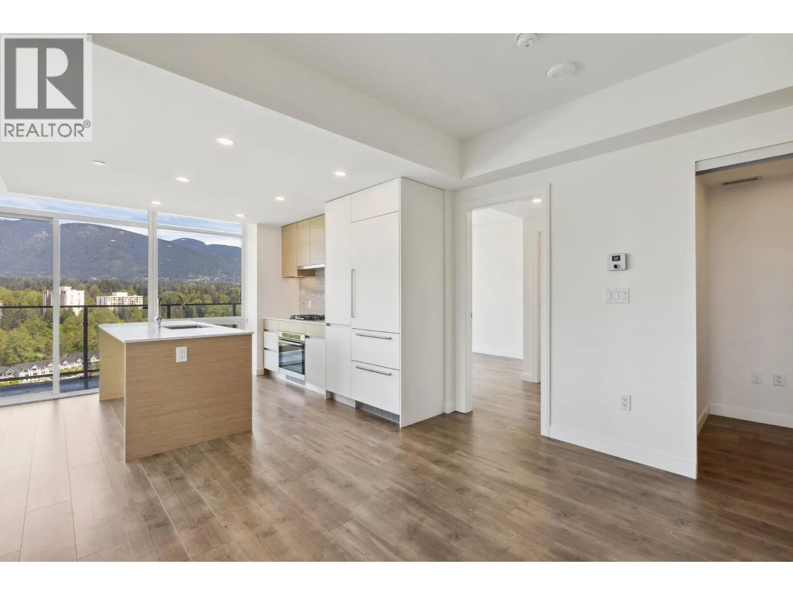 Welcome to The Sentinel! This 2-bed + den 2-bath CORNER UNIT has SPECTACULAR PANORAMIC Ocean, City, and Mountain views from every room and a 402 sqft wrap around terrace with a gas-hookup for your bbq. Luxurious features include 9-ft ceilings, floor-to-ceiling windows, and air-conditioning. Gourmet kitchens include AEG/Liebher appliance package, 5-burner gas range, quartz stone counters & backsplash. Spa-like bathrooms