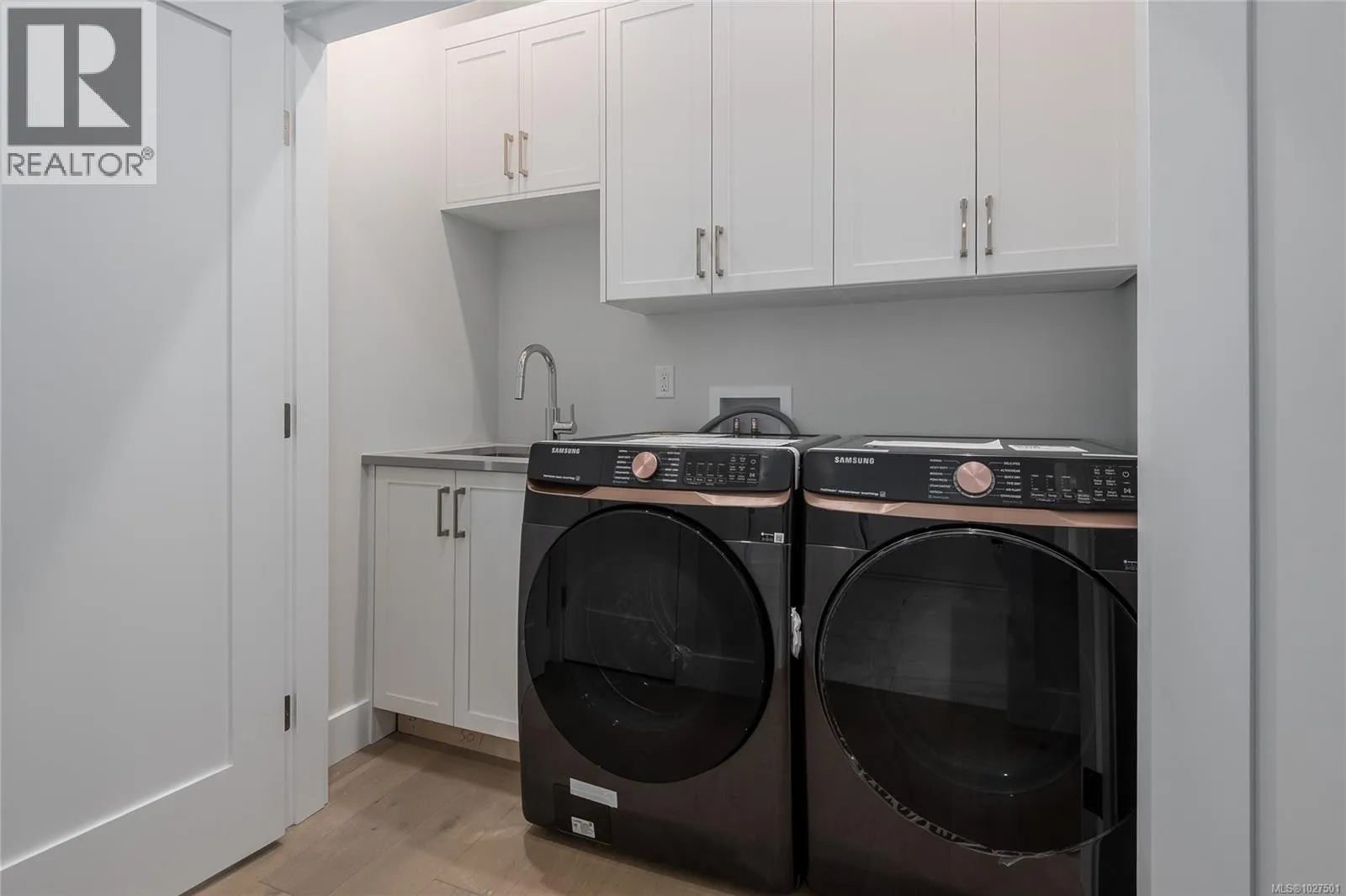New construction by BP2 Construction Ltd., 3,023 sq ft across two levels on Crown Isle Blvd in Courtenay. Coastal Craftsman exterior with hardie siding, shingle detail, glass railing balcony, and a 413 sq ft double garage with EV charger wiring. Built to BC Energy Step Code 4 and Zero Carbon Step Code EL4, exceeding the required level. EnerGuide rated at