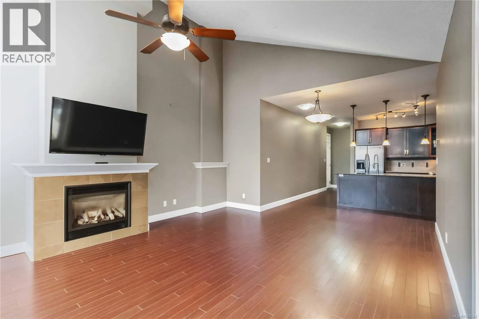 Welcome to this TOP FLOOR northwest corner unit in the popular Waterstone complex. This unit offers soaring vaulted ceilings, a gas fireplace, open concept kitchen/dining and living area, primary bedroom with double closets and an ensuite bath with walk-in shower, generous second bedroom and full 4 piece bathroom. A huge wrap around deck with views over Glen Lake to the