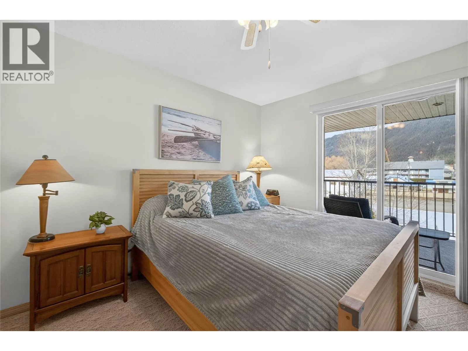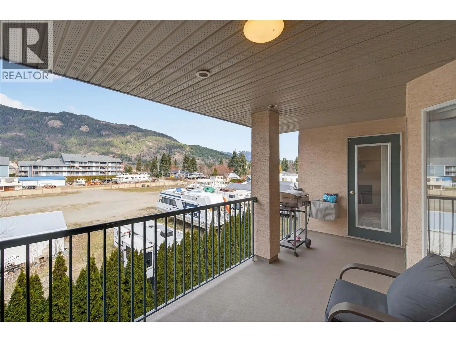 Now available in Sicamous, this top floor 2 bedroom, 2 bathroom residence offers vaulted ceilings & tasteful updates throughout, including flooring, kitchen counters, & appliances. Located on the shaded, cool & quiet side of the building, the private patio provides comfortable outdoor living during warm Shuswap summers. The spacious primary suite features a generous closet & convenient ensuite laundry, creating