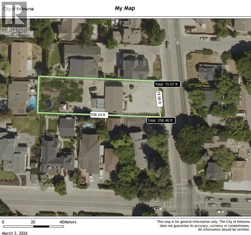 Prime Transit-oriented Multi-family Development Site just 300 meters from Kelowna General Hospital. This rare 0.45-acre site is ideally located within the Hospital Transit Oriented Area, the property is zoned MF4 – Transit Oriented Areas with future land use designation Core Area – Health District (C-HTH). Zoning supports multi-unit residential development up to approximately 6 storeys with a base FAR of