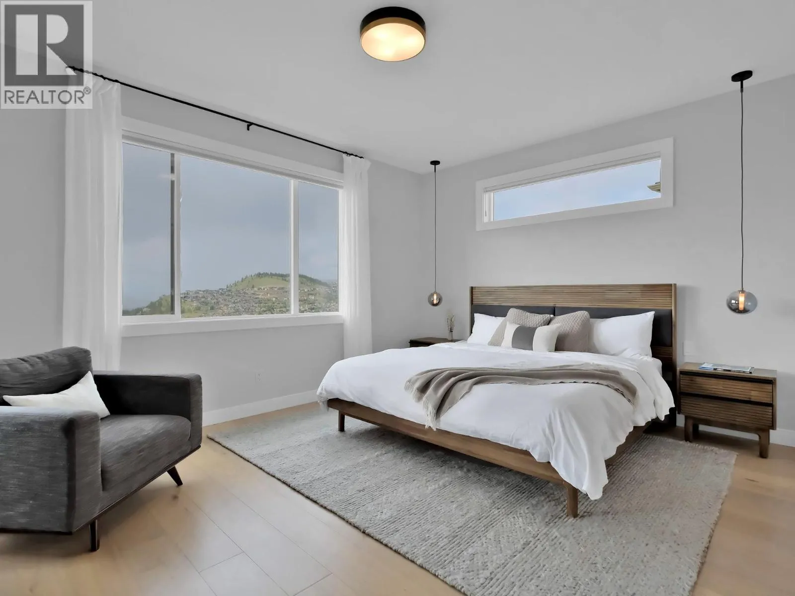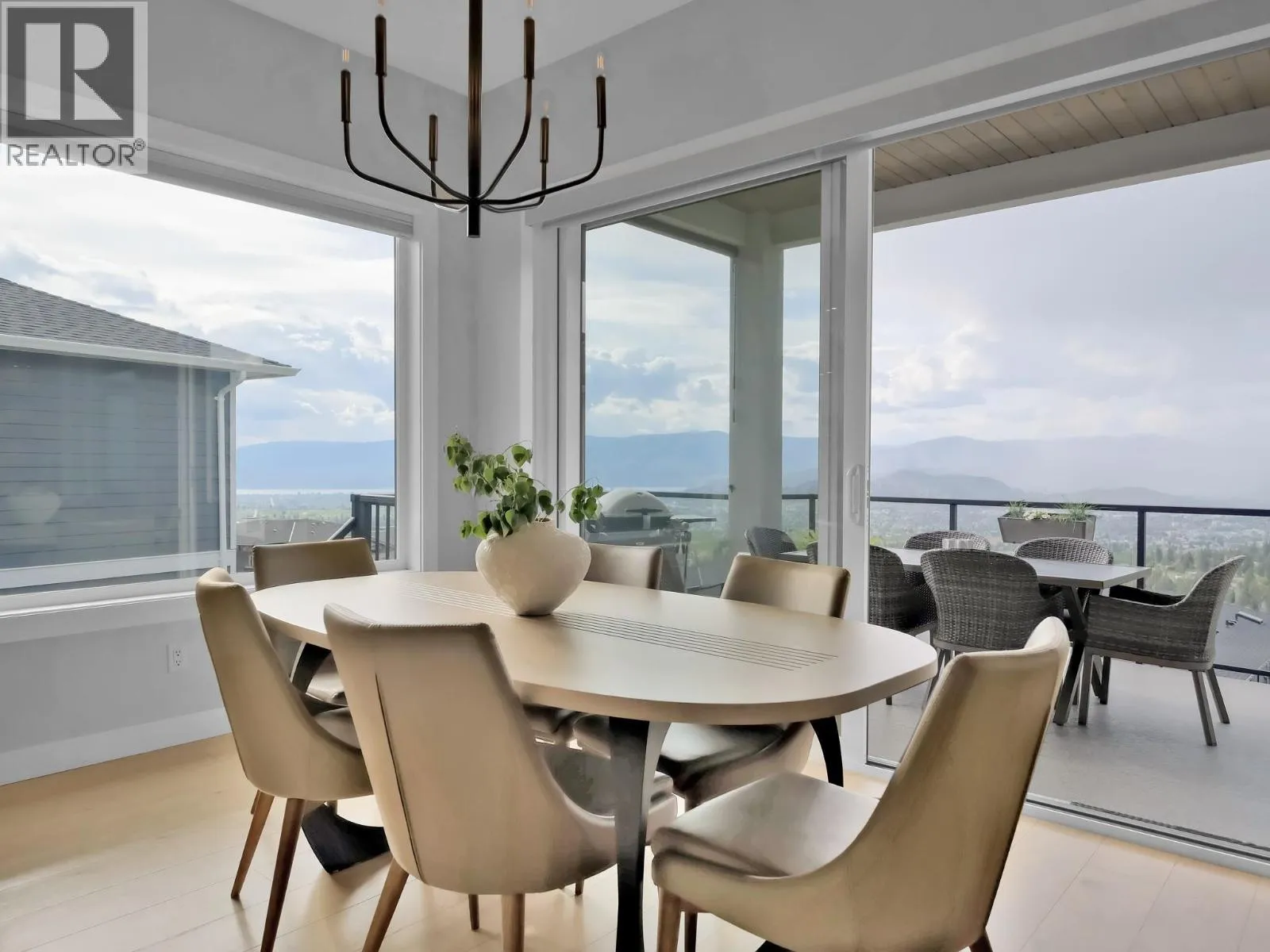Experience this contemporary custom home in Kelowna, boasting breathtaking panoramic views of the city, Okanagan Lake, and the majestic mountains. A unique feature is the rare extra RV parking, a valuable asset in the neighborhood. Inside, a grand 13-foot foyer welcomes you, leading to the spacious 10-foot ceilinged living and kitchen areas. The custom kitchen is a chef’s delight with