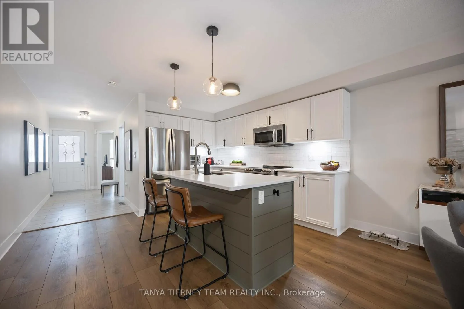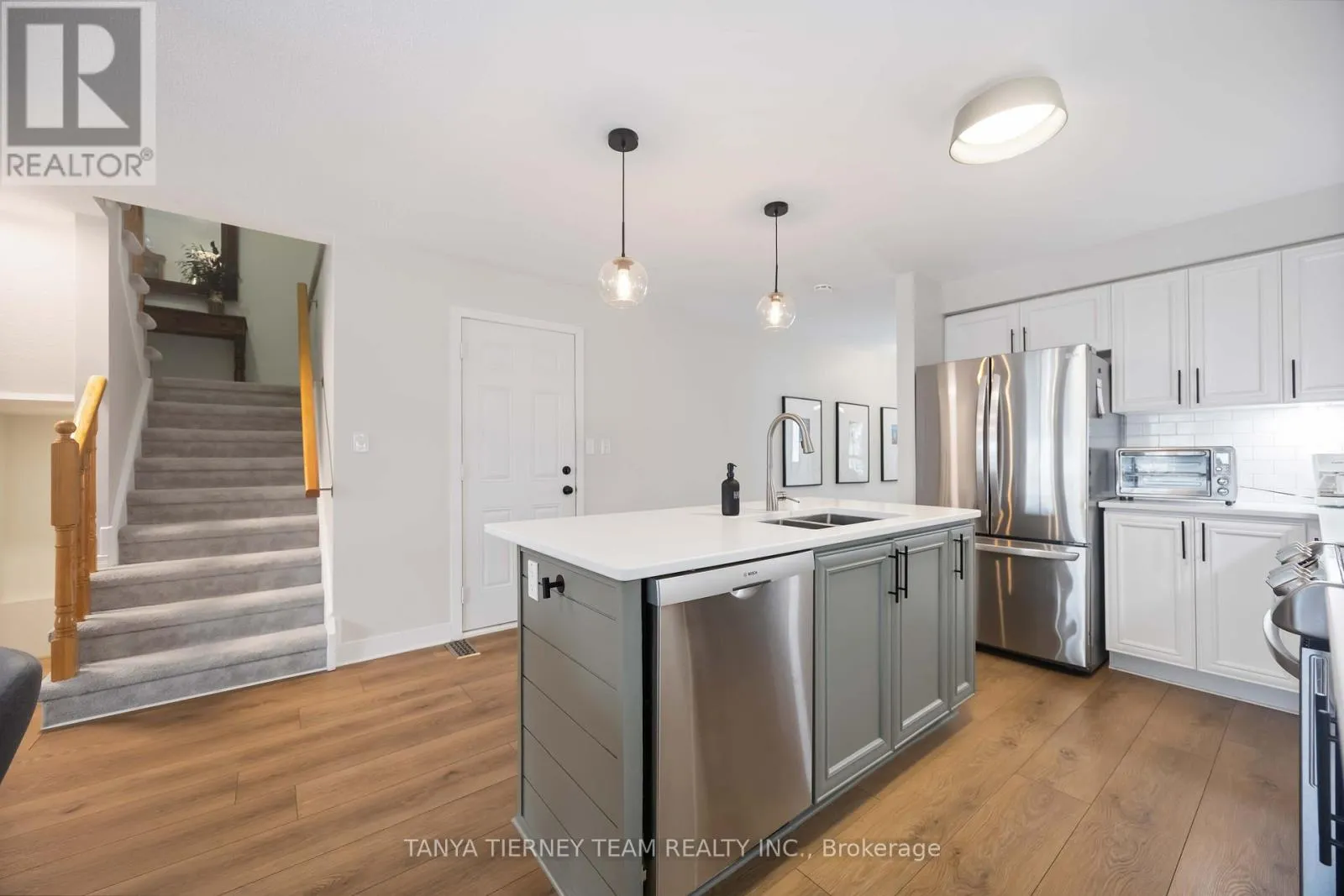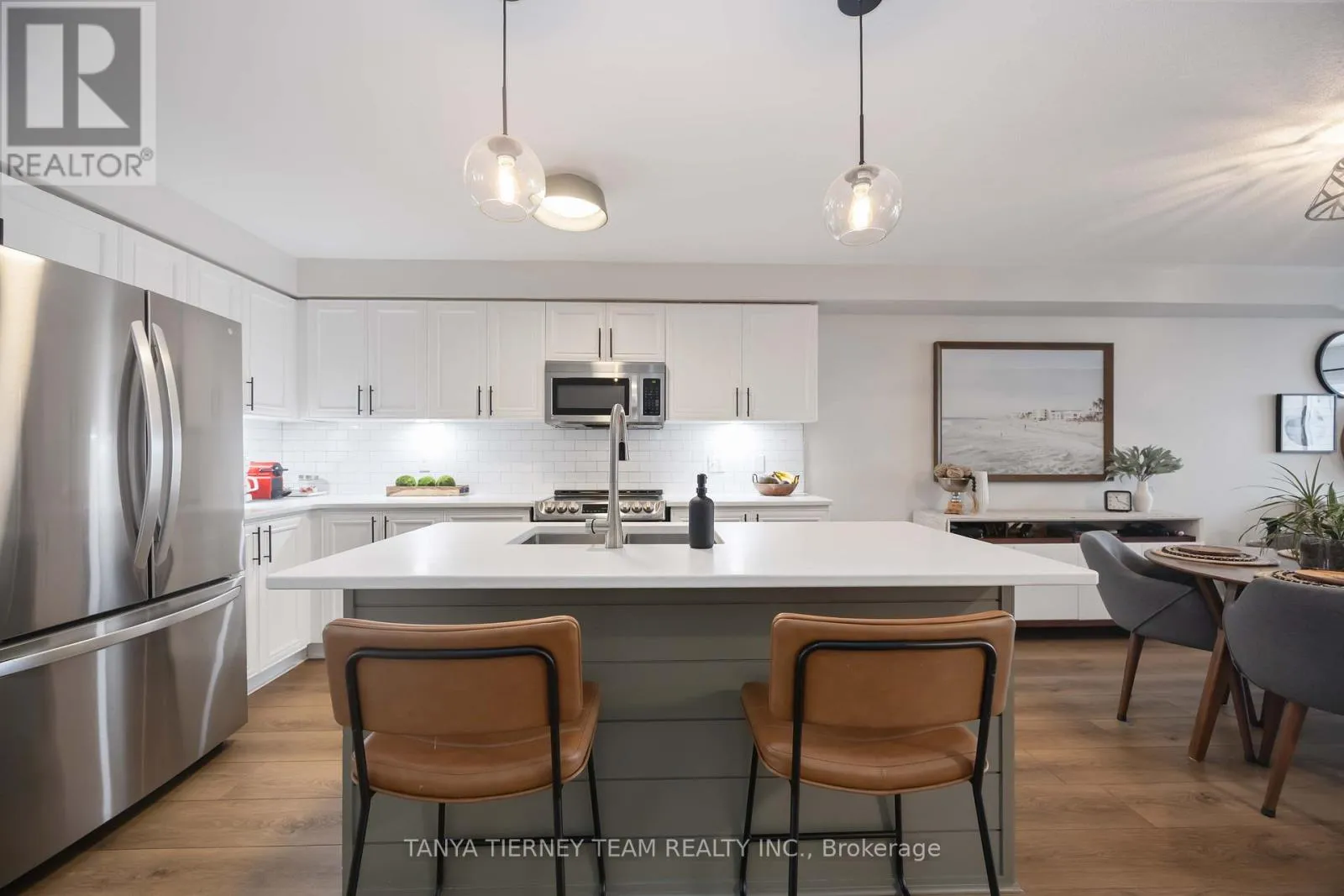 Rarely offered 4+2 bedroom, 4 full bath freehold townhome in a sought-after West End Peterborough community. This unique property offers exceptional multi-generational living potential with a fully finished basement featuring a kitchenette (outlet for stove) OR an upper-level retreat with 2 bedrooms, 4pc bath and family room. A true unicorn! The sun-filled open concept main floor features luxury vinyl plank
