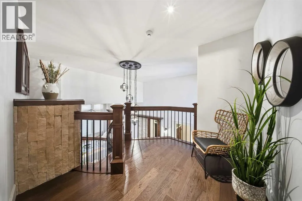 gas fireplaces. a SHOWSTOPPING architectural statement that blends warmth, artistry & modern ELEGANCE! The gourmet kitchen is a chef’s dream, complete with a butler’s pantry, prep sink, professional grade appliances and rich granite countertops that anchor the space with TIMELESS SOPHISTICATION. BEAUTIFUL hardwood flooring sweeps throughout, adding warmth & refinement at every step. A curved open riser hardwood staircase leads to the upper floor (LOFT) that is beautifully finished with a spacious bedroom, 4-piece bath and bonus room, ideal for guests or teenagers. Other great features include, triple pane windows, custom draperies, HUNTER DOUGLAS motorized blinds, steam shower, water softener, 2 air conditioners, incredible 2-piece powder room with custom maple vanity & upgraded lighting! The LUXURIOUS Primary suite is perfectly positioned to capture the natural beauty of the Piper creek valley and offers uninterrupted views of rolling landscapes and paved walking trails, with lots of natural light that pours through the expansive windows & a private door that opens directly onto the west facing balcony. A space designed for peace, rejuvenation, & beauty at every angle. The 6-piece ensuite is nothing short of a spa sanctuary. Outfitted with sleek QUARTZ COUNTERTOPS, a steam shower, free standing soaker tub, a striking feature stone wall, every detail whispers LUXURY! From the ensuite step seamlessly into the walk-through closet featuring many custom built in cabinetry- beautifully designed with organization & style in mind. This smart layout continues directly into the connected laundry room, o ffering UNMATCHED functionality and ease. Just off the main floor, a gentle step down leads you to an oversized, versatile room that immediately impresses with its sense of space & character, currently styled as a grand office, this incredible room features VAULTED CEILINGS, gorgeous chandelier, and charming shiplap walls, a large fully finished closet making the space even more flexible in its uses. The WALKOUT basement is nothing short of an entertainer’s dream- Designed with LUXURY, lifestyle & pure enjoyment in mind. A CUSTOM wet bar, ice maker, 2 wine fridges & dishwasher. Large bedroom with a 4-piece ensuite, GYM, theatre room, and completed with GOLF SIMULATOR! Walkout onto an aggregate screened room that overlooks the maintenance free backyard! SPACIOUS HEATED GARAGE features, epoxy flooring, 2 man doors, high ceilings & central vacuum. Other features include: Misting system, synthetic grass, professional landscaping, control 4 surround, BEAMED CEILINGS, REVERSE OSMOSIS, built in BBQ. (id:62650)