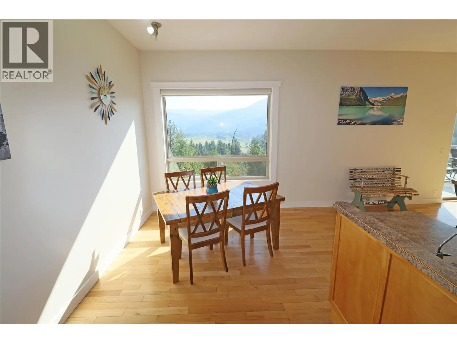Executive rancher with breathtaking views of river, valleys, and mountains. This custom-built home features a butler pantry, central island, and pull-up bar in the kitchen, along with 10 ft ceilings, hardwood flooring, and natural gas in-floor heating. The spacious layout includes 3 bedrooms, 3 bathrooms, and extra-large rooms, all flooded with natural light and stunning views. Situated on 2 1/2