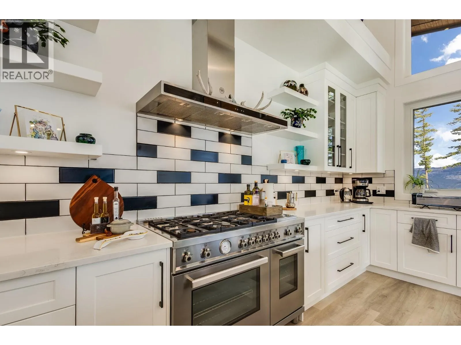 Welcome to 7235 Dunwaters, a custom built 2 storey masterpiece set on .28 acre flat lot with sweeping lake and mountain views that can’t be obstructed and breathtaking from every single room.The moment you step inside,vaulted ceilings and floor-to-ceiling windows immediately impress, flooding the open-concept main level with natural light.The kitchen is a showpiece with white cabinetry,high-end S/S appliances, and