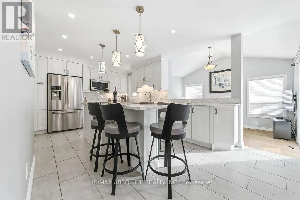 Welcome to this beautifully updated 4-bedroom, 2.5-bath home on a quiet crescent in the family-friendly community of Chapel Hill South. Offering 1,871 sq. ft. of move-in-ready living space, this property features extensive upgrades throughout.The bright, open-concept main floor showcases hardwood and porcelain tile flooring and a stunning renovated kitchen with an impressive 8-foot island, quartz countertops, high-end stainless steel appliances,