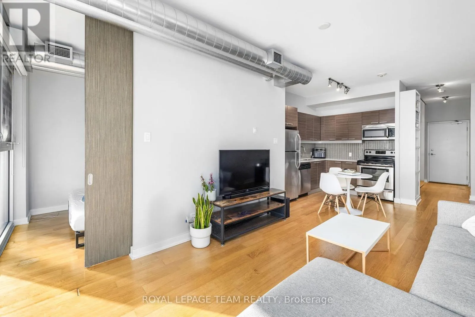 Experience Centretown living at it’s best at Central 1. This open concept 1 bed+den ft bright wide engineered hardwood floors, floor to ceiling windows and large balcony spanning the length of the unit. Carefully placed den w/double doors is a fitting spot for work from home! The Kitchen is equipped w/Stainless appliances, crisp glass backsplash and quartz counters. This rare