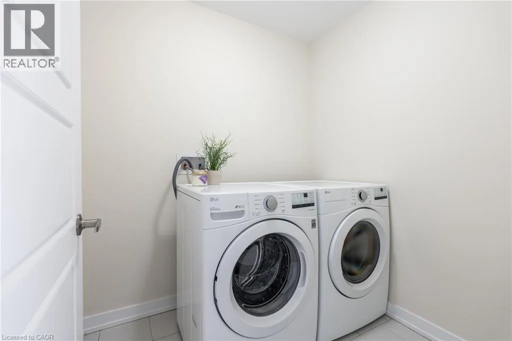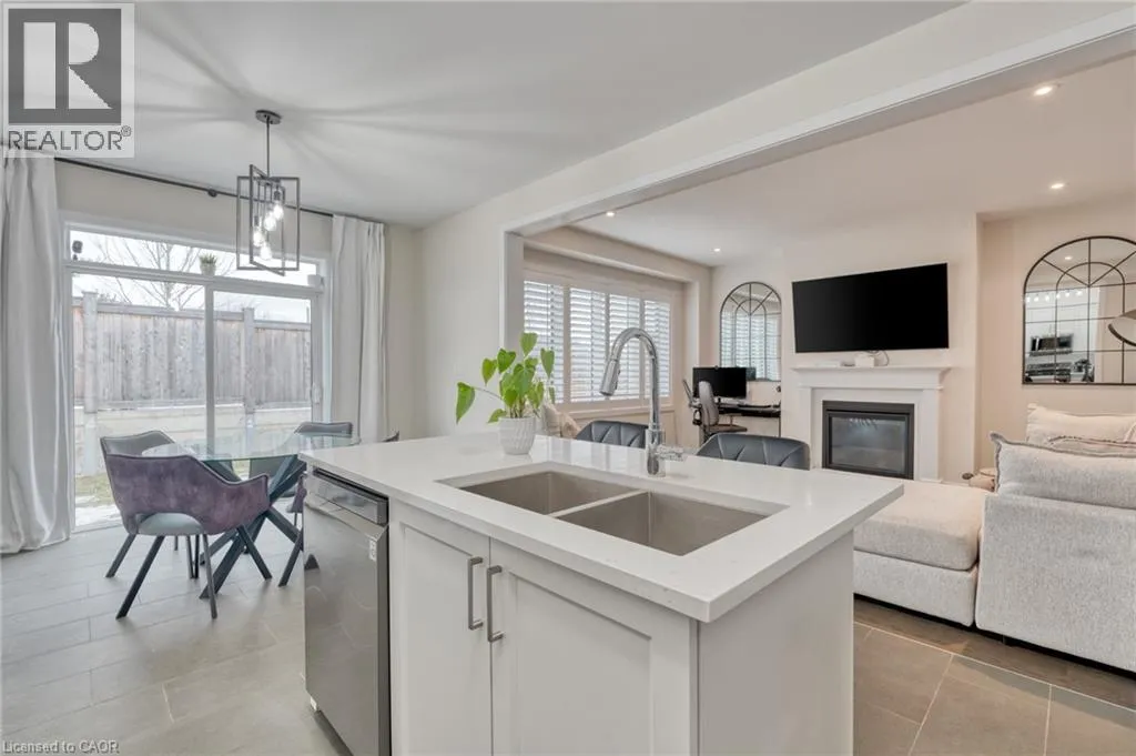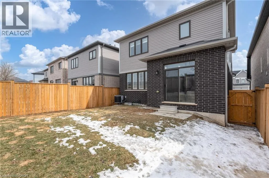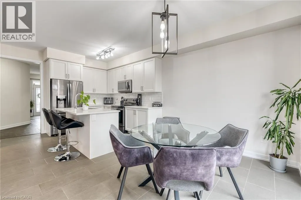 Situated in a quiet neighborhood near the Grand River, this 1,893 square foot home is less than two years old and has been well-maintained. The interior features nine-foot ceilings and hardwood flooring across the entire main level, complemented by a matching oak staircase. The kitchen is finished with quartz countertops, dark stainless steel appliances, and shaker cabinetry. In the adjacent