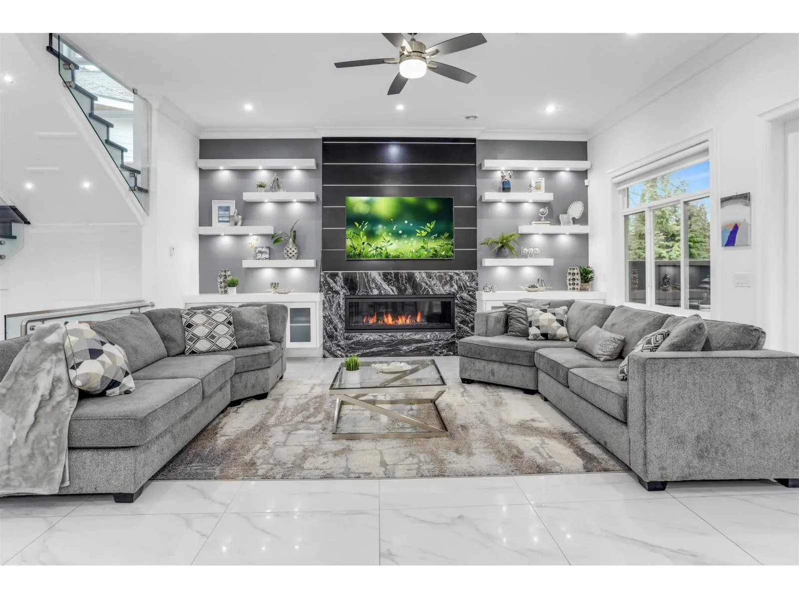 Luxury Living in Fleetwood’s Premier Cul-De-Sac This stunning custom-built home sits on a 9,572 sq. ft. lot, offering mountain views and a private backyard oasis backing onto a greenbelt with a built-in BBQ, gazebo, and accent lighting. Inside, 11-ft ceilings, multiple living areas, and a chef’s kitchen with double islands, Jenn-Air appliances, and a butlers kitchen create a luxurious
