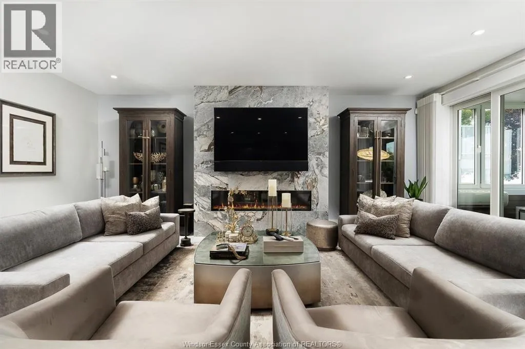 11770 Riverside Dr Arrive home to a private waterfront sanctuary on approx 1 Acre – where timeless elegance meets refined Windsor luxury. This two-storey home offers 3 bedrooms and 4 bathrooms with approx. 5,000 sq. ft. of finished living space, plus a 1,480 sq. ft. resort-style pool house. Designed for effortless entertaining and relaxed lakeside living, the property features thoughtfully