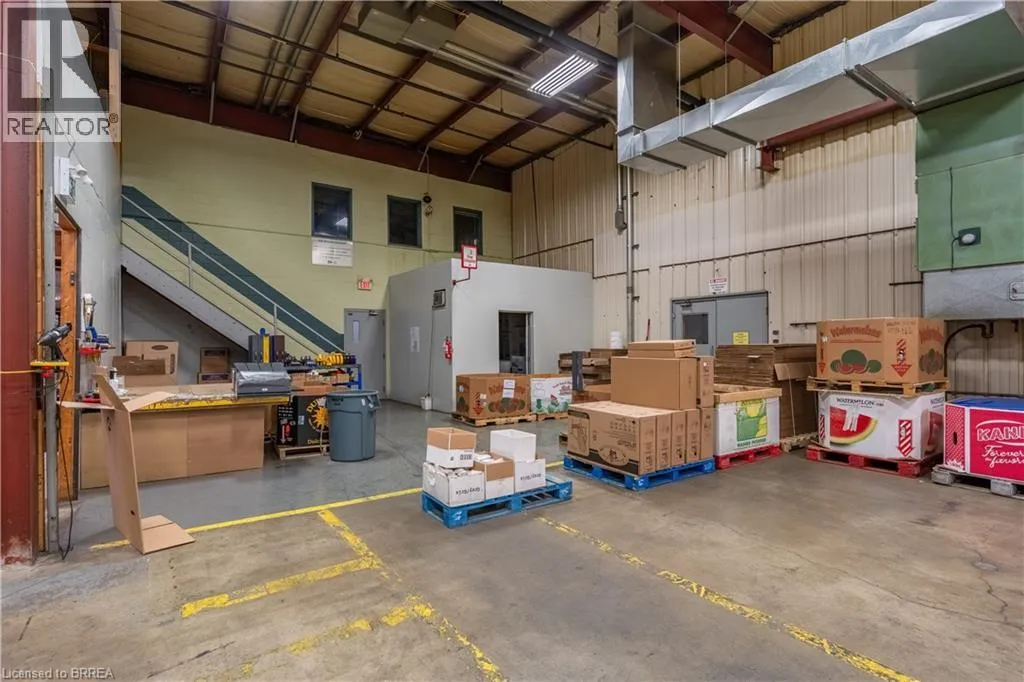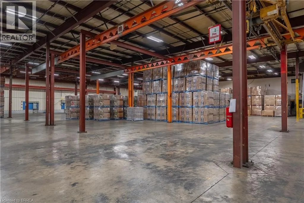 Industrial building ideally located with easy access to Hwy 403, GE General Employment Zone allowing for a wide range of industrial/warehouse uses. Building features include: Power – 9,000 – 14,000 amps; shipping 8 x TL 3 x DI. Cranes 1- 5 ton. Building is sprinklered (EFSR Designation). Existing 5,000sf of finished office as well as employee areas, shop washrooms and