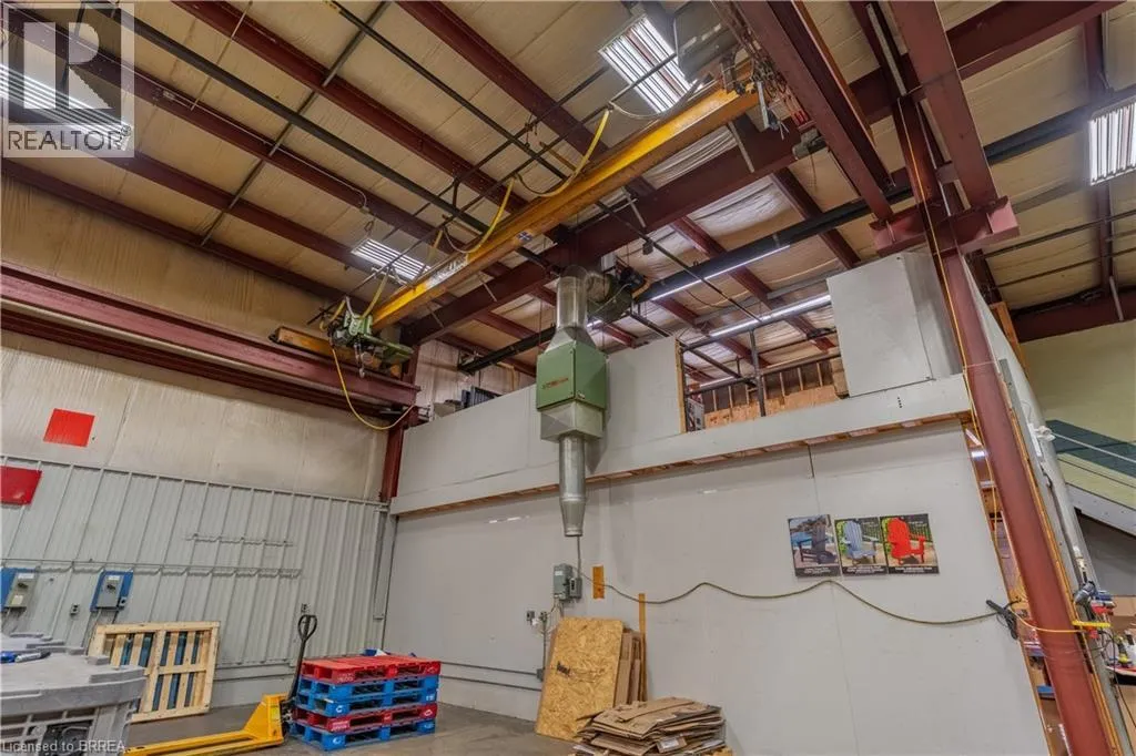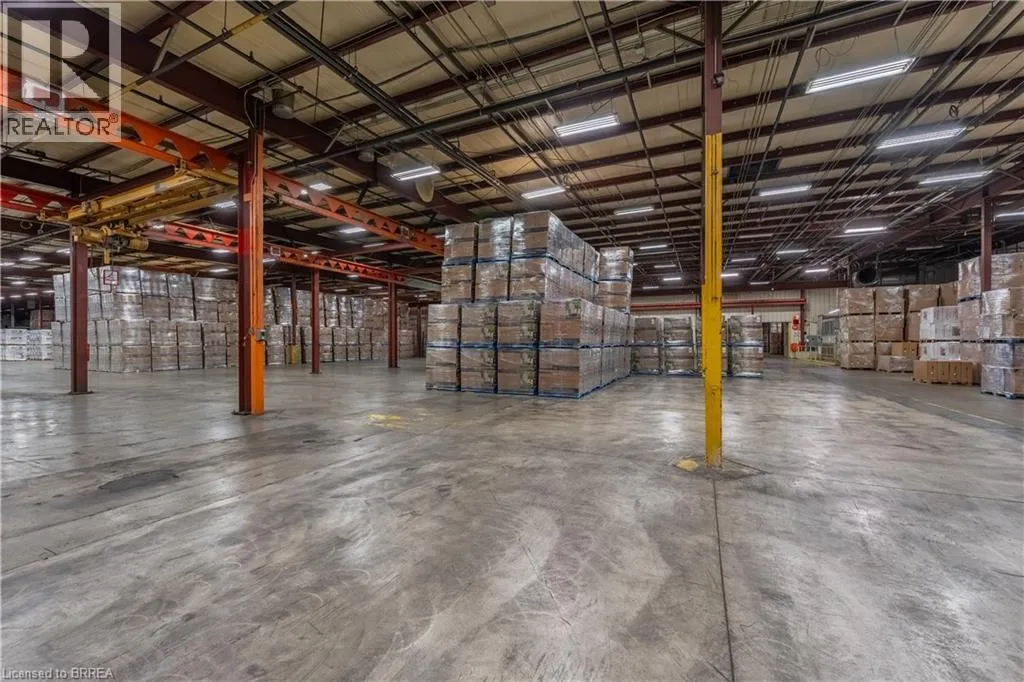 Industrial building ideally located with easy access to Hwy 403, GE General Employment Zone allowing for a wide range of industrial/warehouse uses. Building features include: Power – 9,000 – 14,000 amps; shipping 8 x TL 3 x DI. Cranes 1- 5 ton. Building is sprinklered (EFSR Designation). Existing 5,000sf of finished office as well as employee areas, shop washrooms