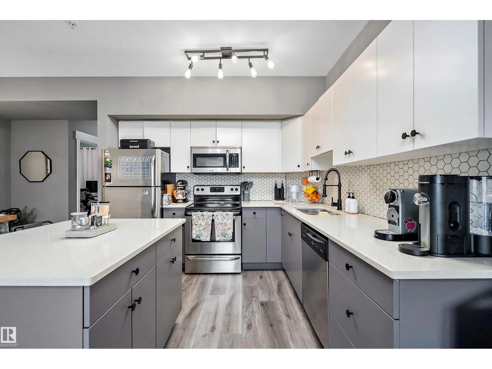 Experience the best of urban living in the heart of Queen Mary Park, downtown Edmonton! This spacious 2-Bedroom, 2-Bathroom condo offers modern comfort and style. Featuring an updated Kitchen with a convenient prep island perfect for cooking and entertaining. You will love the quartz countertops! Gorgeous elegant laminate flooring flows throughout the home, adding warmth and sophistication. Wake up to