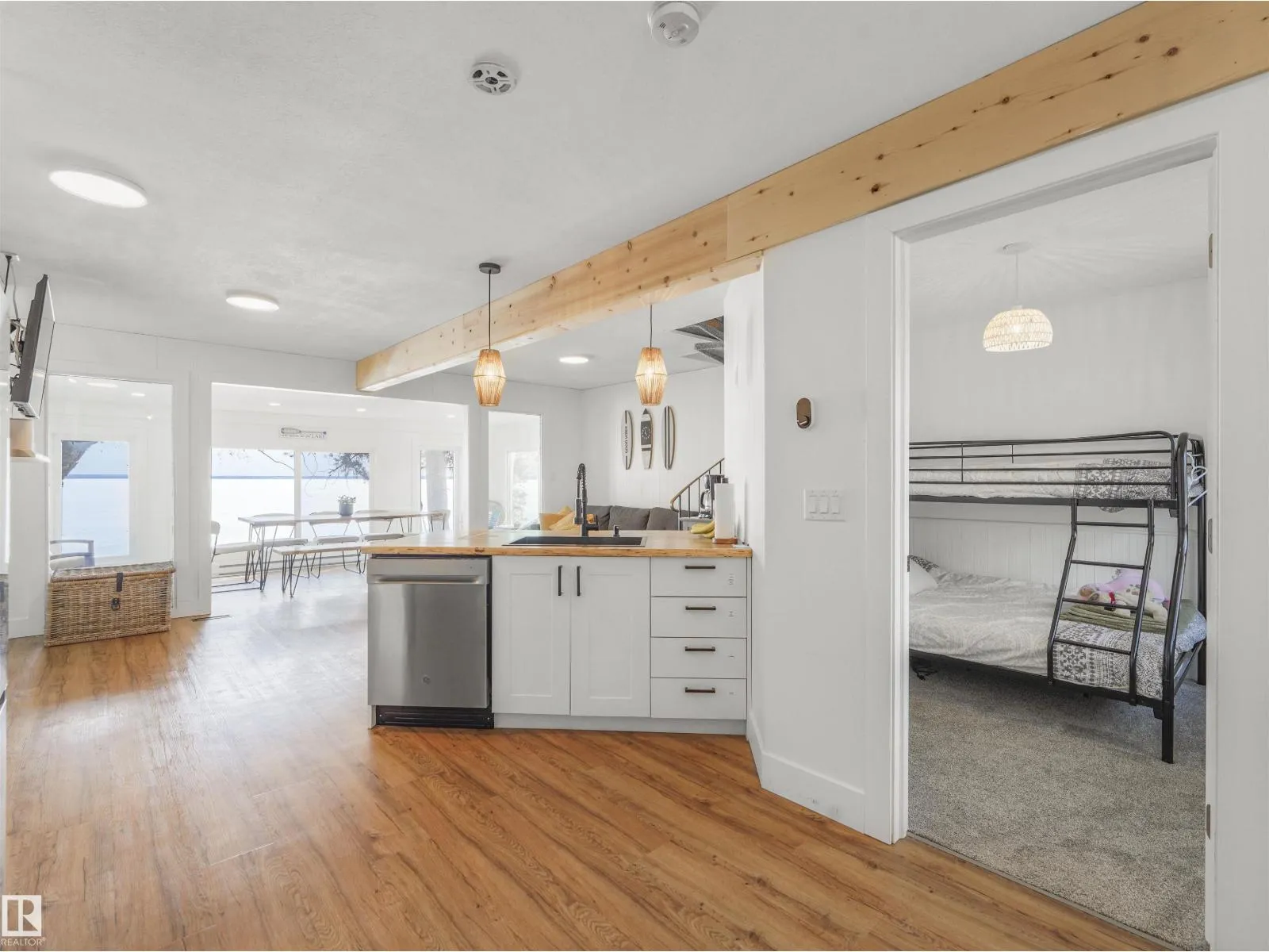 The Ultimate Family Lakefront Retreat! Discover the perfect destination for large families and hosting at this Lac Ste. Anne gem in Ross Haven. Fully renovated and thoughtfully designed, this 2-story, 5-bedroom, 2-bathroom home ensures everyone has a comfortable place to stay. The open-concept main floor is bathed in year-round sunlight, offering expansive lake views through south-facing windows—perfect for big family