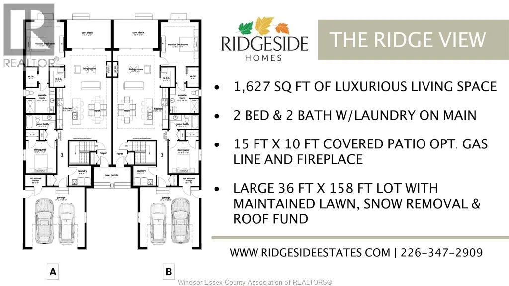 MODEL HOME OPEN EVERY SUNDAY 1-4PM – ELIGIBLE HOMEBUYERS SAVE THE HST FOR A LIMITED TIME – ASK FOR DETAILS! – Welcome to Cottam, just 18 mins to Windsor! These luxurious ranch-style Twin Villas by Ridgeside Homes offer 2 floorplans and are built with the highest quality of materials and craftsmanship. Incredible curb appeal with full brick/stone exterior, 4 car