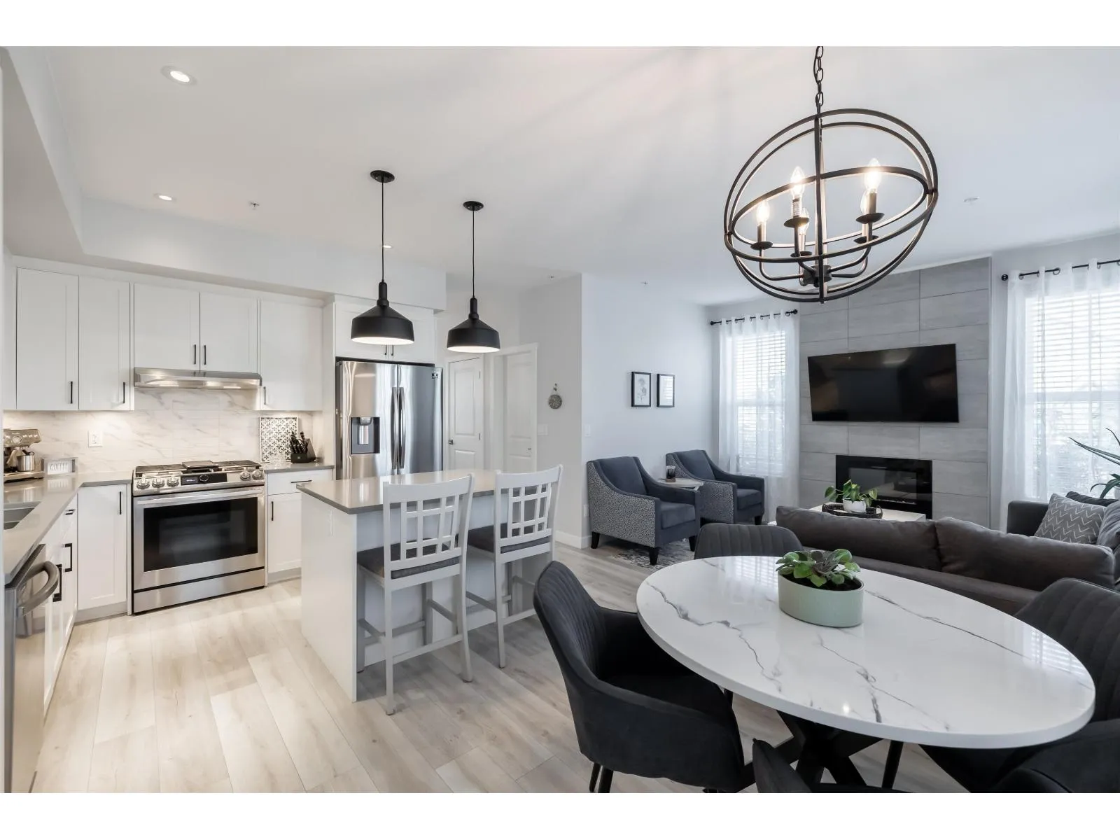 GORGEOUS END UNIT ROWHOME IN WILLOUGHBY – DITCH THE STRATA FEES! This large, 3 storey Rowhome checks all the boxes. The Main floor has a wide open Living/Dining area plus another Family Room adjacent to your Nook and Kitchen. The Kitchen has ample storage space, S/S appliances and a gas stove. Upstairs there are 3 bedrooms including a large Primary
