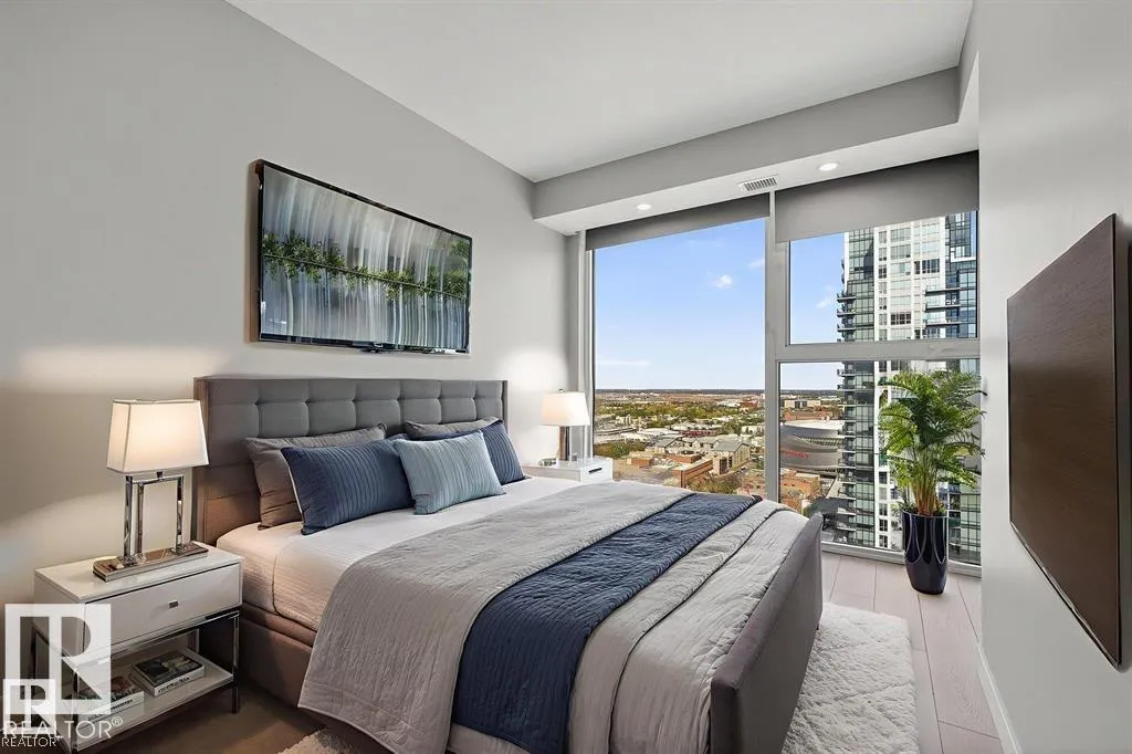 Discover upscale downtown living at Encore Tower, a stunning 43-storey glass high-rise in the heart of Edmonton. Just steps to Rogers Place, the Ice District, restaurants, cafés, and the LRT, this building features a grand 3-storey lobby with concierge service and an impressive amenity level with a fitness centre, hot tub and indoor/outdoor lounges. This beautiful 2-bedroom, 2-bath