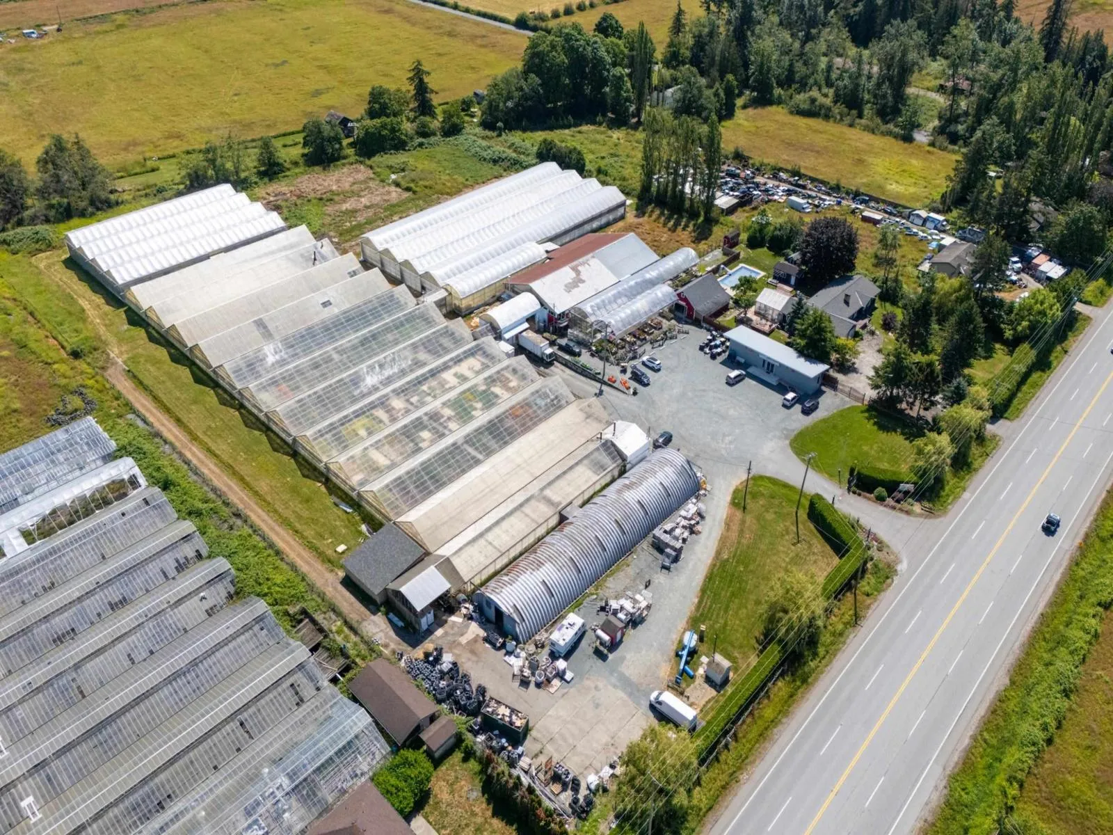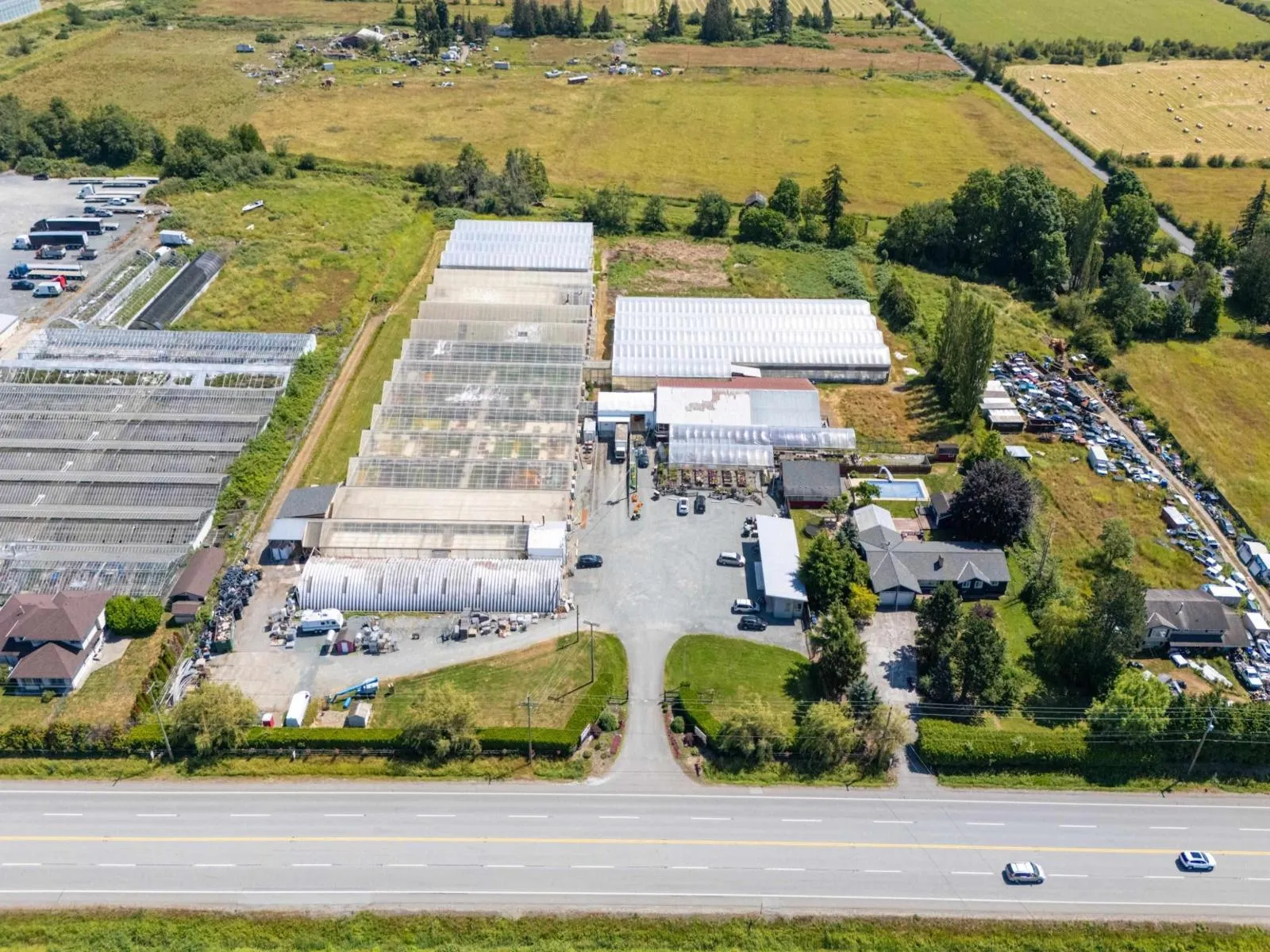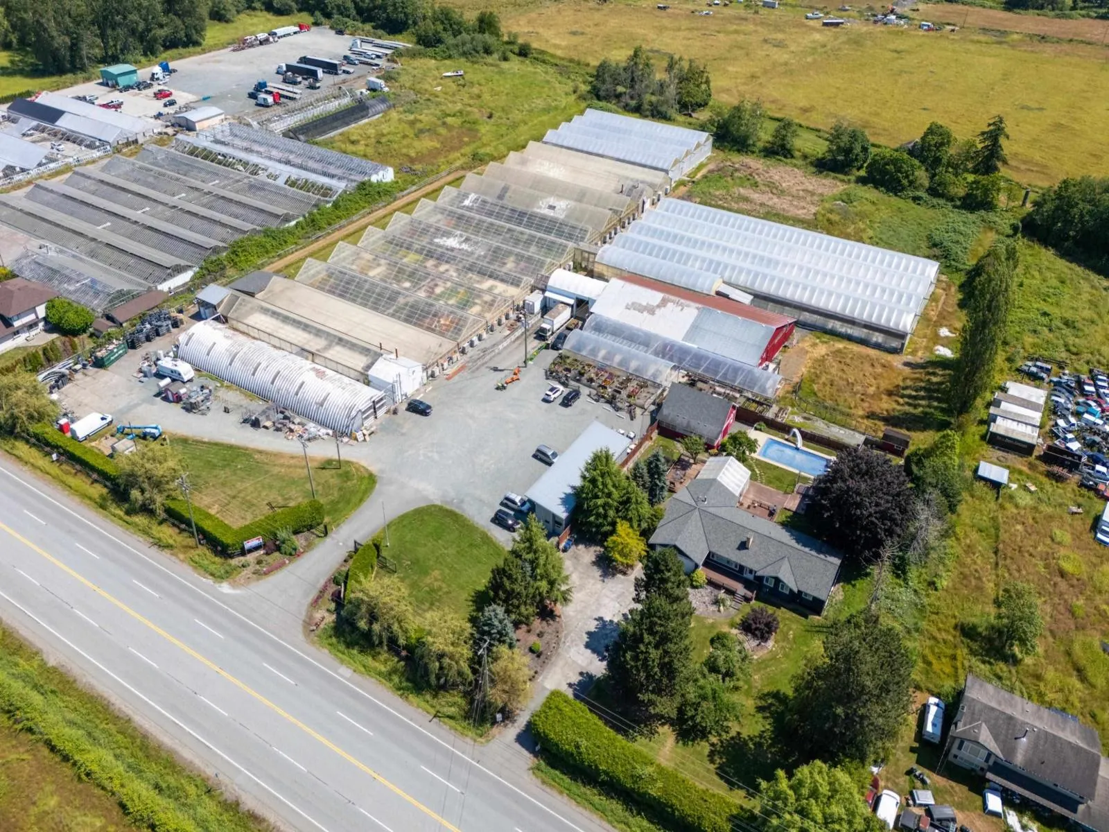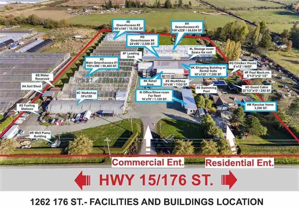 Exceptional 7.94-acre investment opportunity with 502 ft frontage on 176th! Thriving, well-established greenhouse/nursery business featuring 4 metal greenhouses totalling 100,000+ sq ft, retail shop, 7,200 sq ft shipping facility, warehouse, multiple outbuildings, private rental/guest suites, and detached modular office/showroom. Strong customer base with excellent growth potential. Sprawling rancher offers 5 bedrooms and 5.5 bathrooms, designed for entertaining with an in-ground