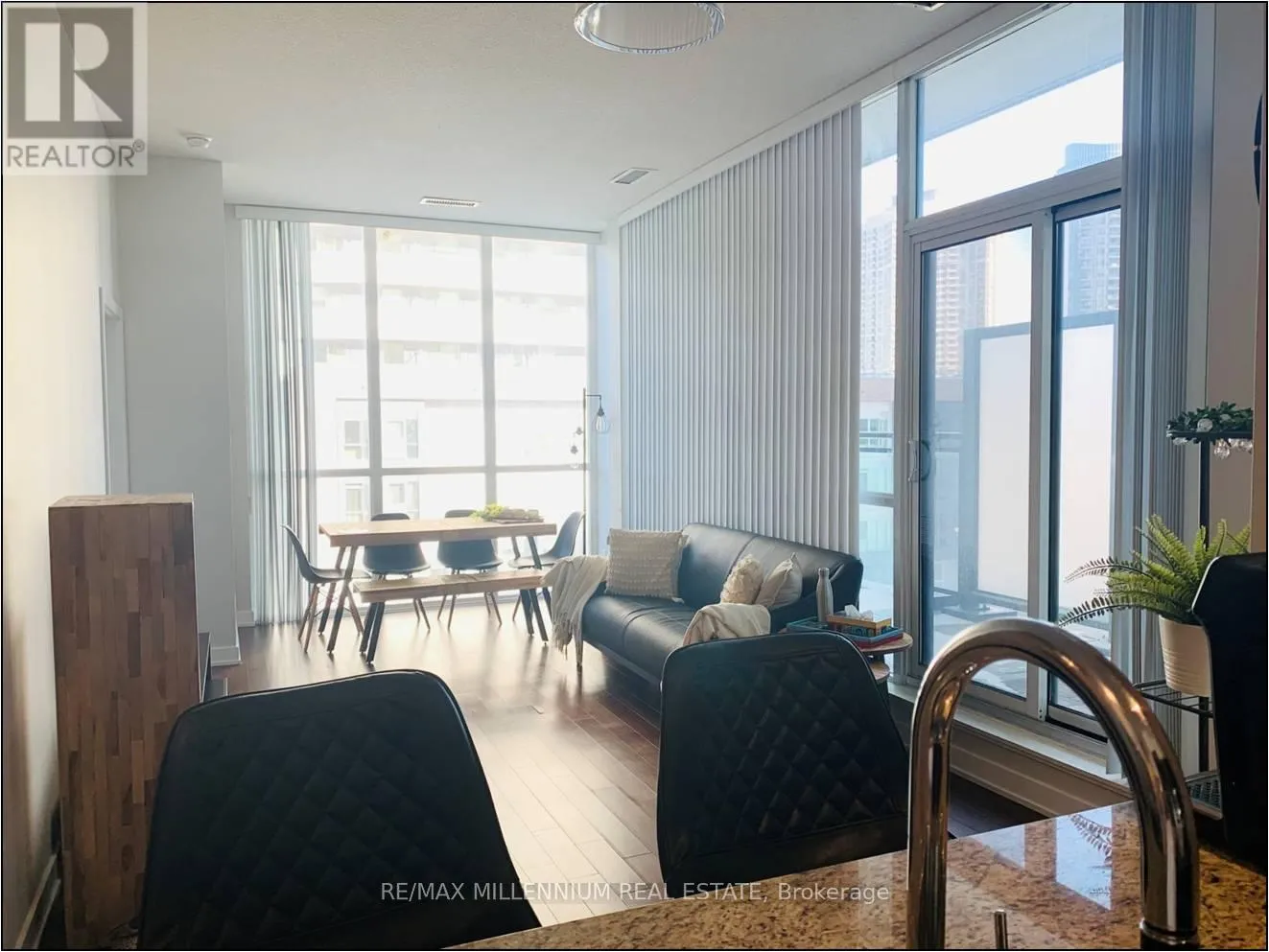 Modern 2 Bedroom plus Den condo featuring a rare Private Deck/Terrace (approx. 1200 sq ft including outdoor space) located at The Grand Residences at Parkside Village in downtown Mississauga. Enjoy 10 ft ceilings, floor to ceiling windows, and a bright, sun-filled terrace ideal for relaxing or entertaining. The unit offers a Modern kitchen with granite countertops, upgraded flooring and in-unit