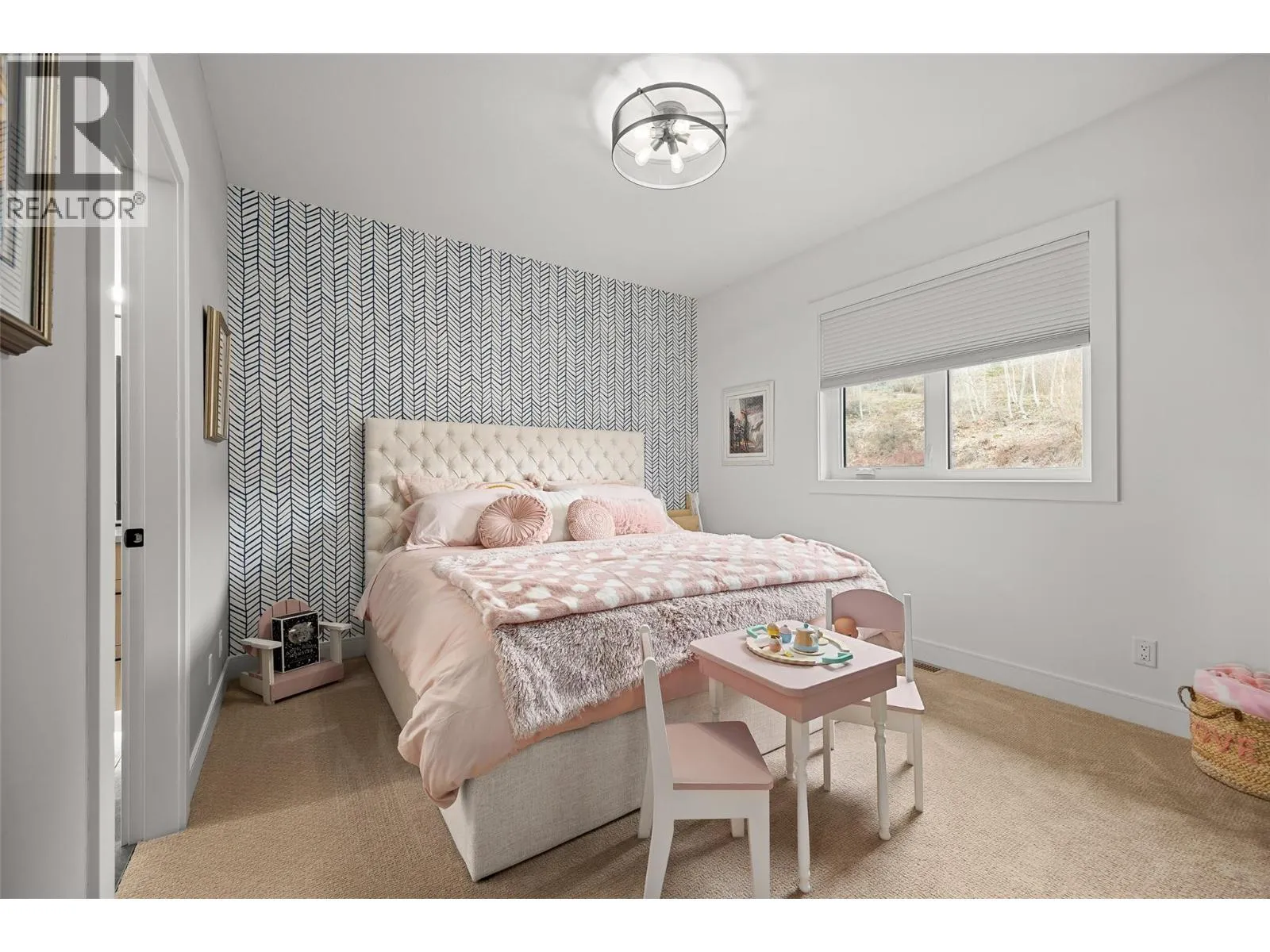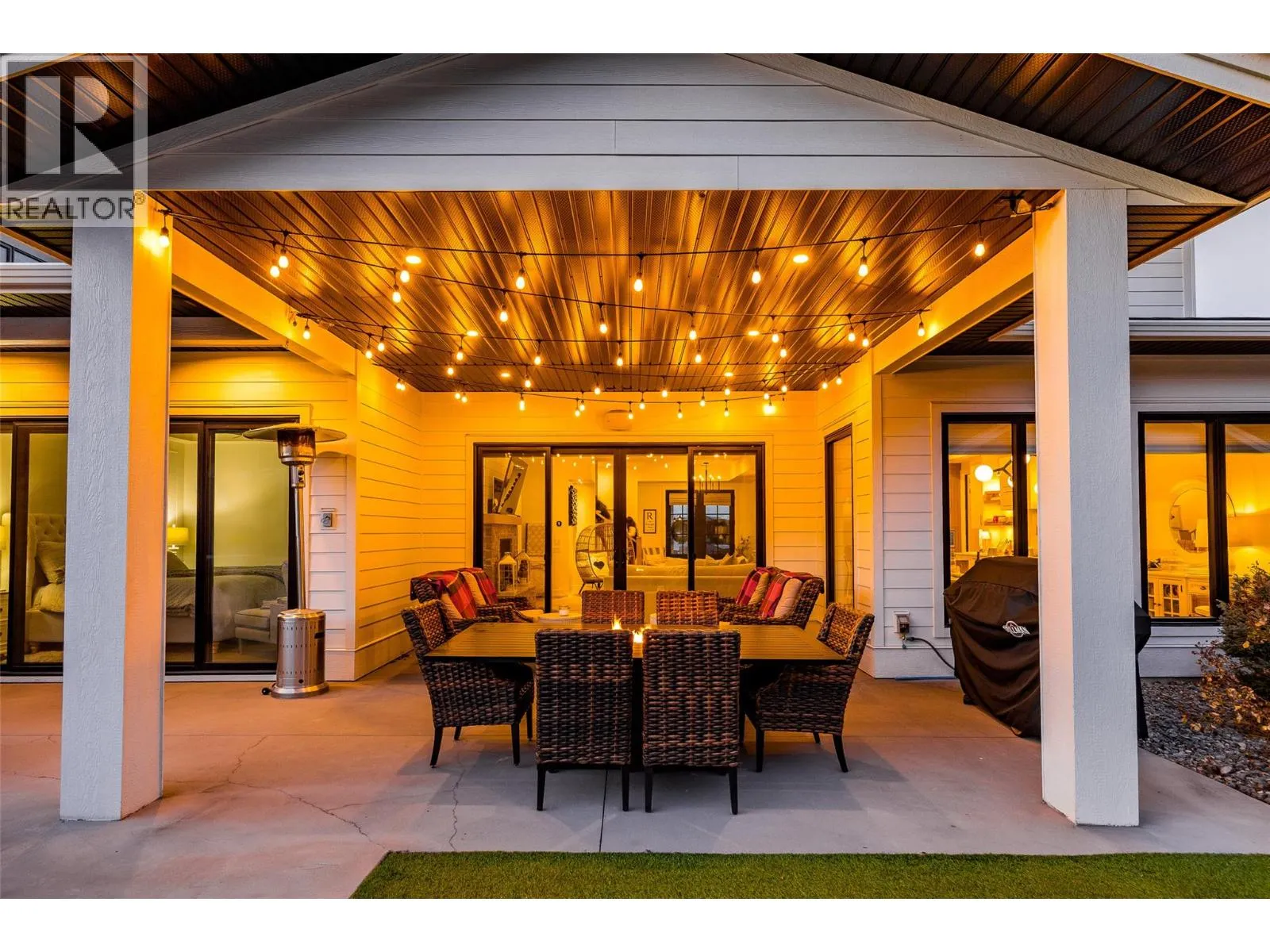 A stunning private backyard featuring a heated saltwater pool, hot tub, turf lawn, covered patio, and a pool house with a built-in bar and bathroom sets this exceptional Kettle Valley residence apart. Designed for effortless indoor-outdoor living, sliding glass doors extend the main living space seamlessly to the outdoor area. Inside the 7 bed + den / 6 bath home,