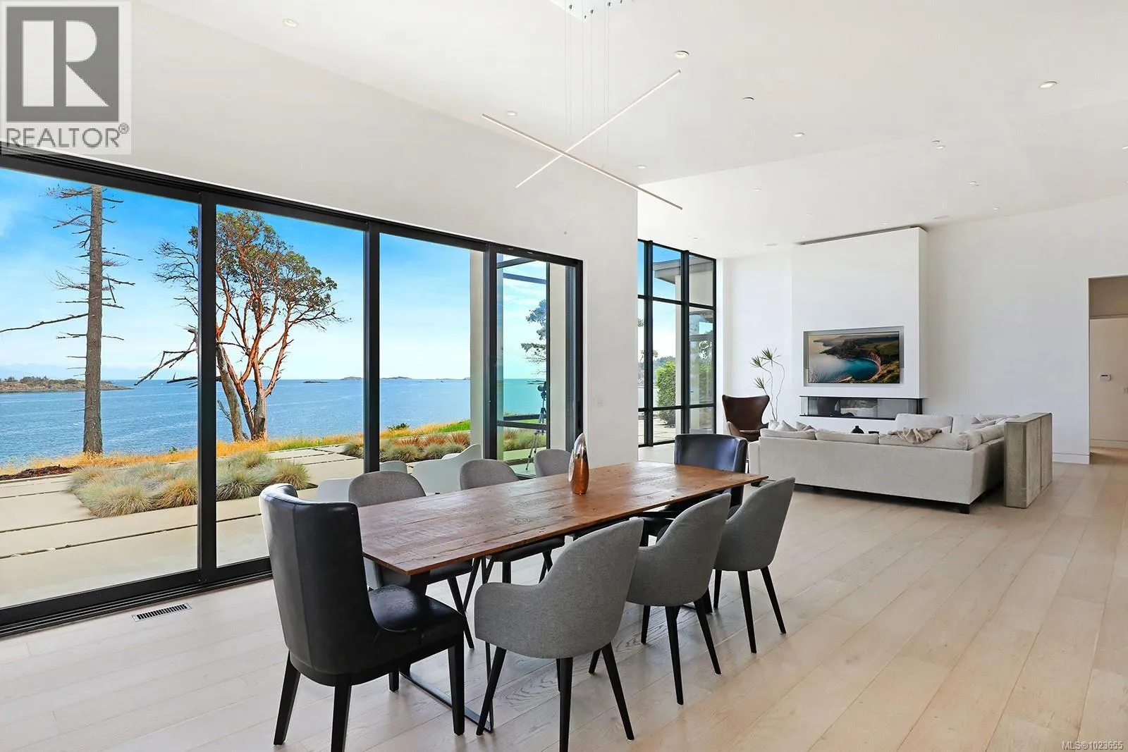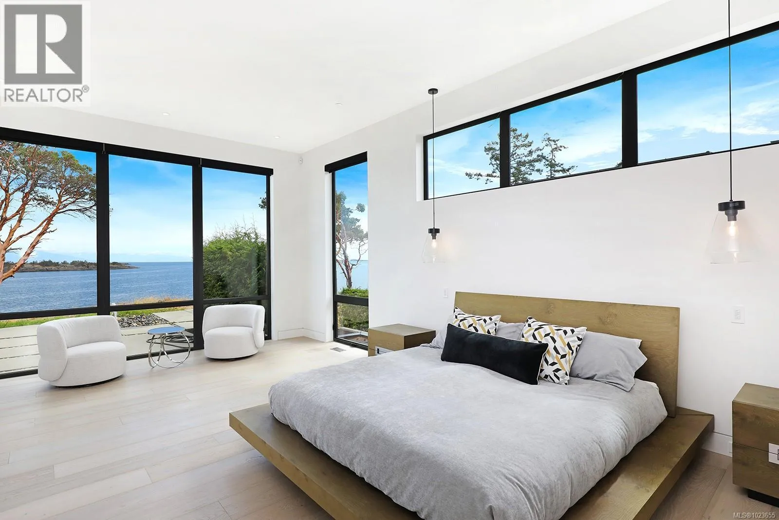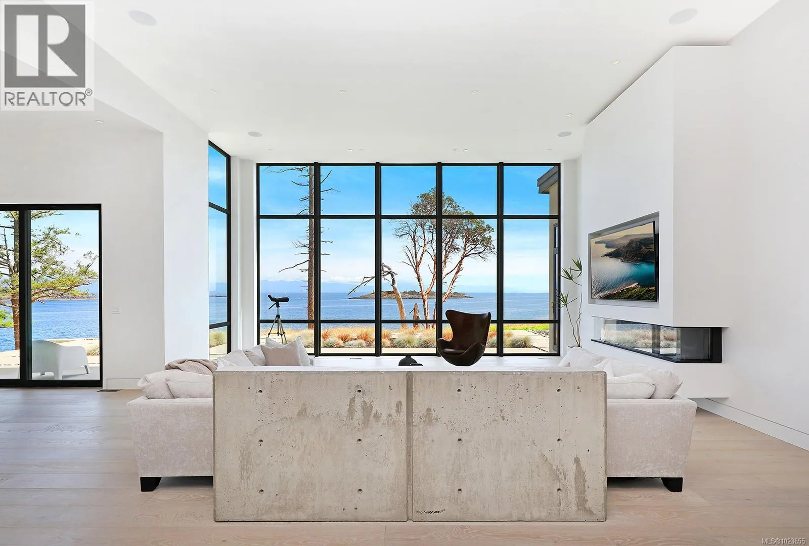 Located in Oak Point Estates, an exclusive enclave of architecturally distinct homes in Nanoose Bay, this exceptional oceanfront residence offers contemporary coastal luxury with rare privacy on a beautifully landscaped 0.76-acre property. Defined by striking architectural presence and advanced infrastructure, concrete elements integrate seamlessly inside and out, conveying strength, permanence, and refined modern elegance. Unobstructed views of the Strait of