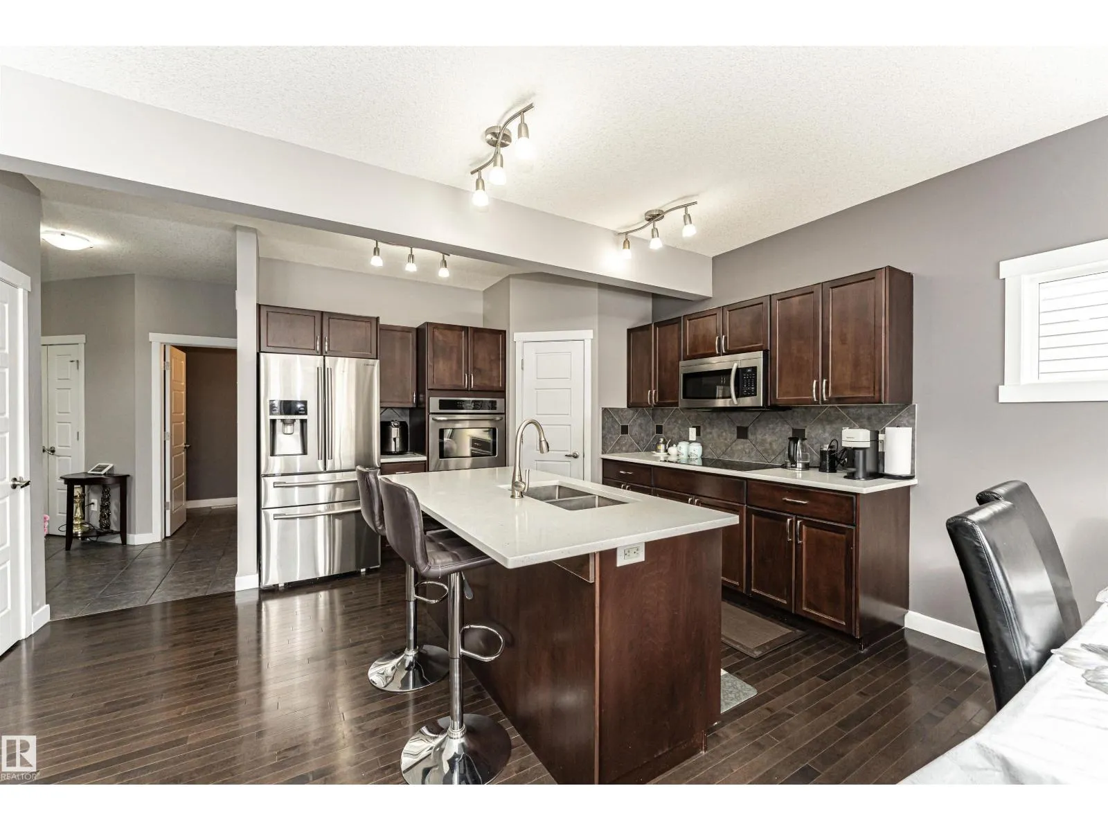 Welcome to Charlesworth! This beautifully updated 2-storey home offers approx. 2,300 sq ft across three finished levels. It features 3+1 bedrooms and 3.5 baths, blending comfort, style, and versatility. The fully finished lower level (developed with permits) has a large 1-bedroom with living room, dining area, full bath, and kitchenette area—perfect for extended family, guests, or entertaining. Professionally painted and