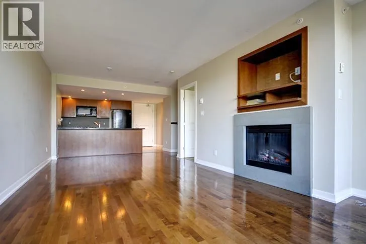 Magnolia at Hamptons Park conveniently located in McLennan North near Garden City Road and Westminster Hwy. This 1 bedroom 1 bath 672sf quiet inside unit comes with engineered real hardwood floors, electric fireplace with concrete mantel, and a built-in pre-wired wooden entertainment shelving unit. The open living/dining area has a built-in table on the side. The gourmet kitchen features rich