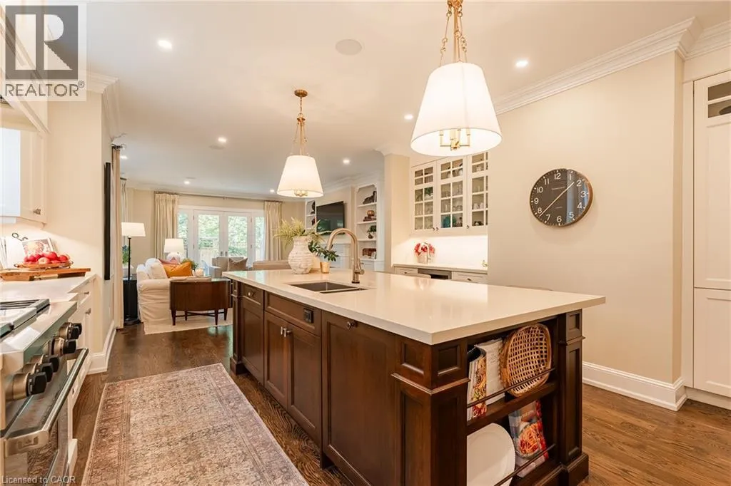 As close to an ideal balance between quiet location and downtown living as you can get. Charming curb appeal and excellent condition. Quality construction and classic finishing. Enter the home through the heavy solid wood front door. Sophisticated and stylish interior. 9′ ceiling height, crown moldings, wainscotting, custom draperies, big windows, and oak floors. Kitchen has large island,